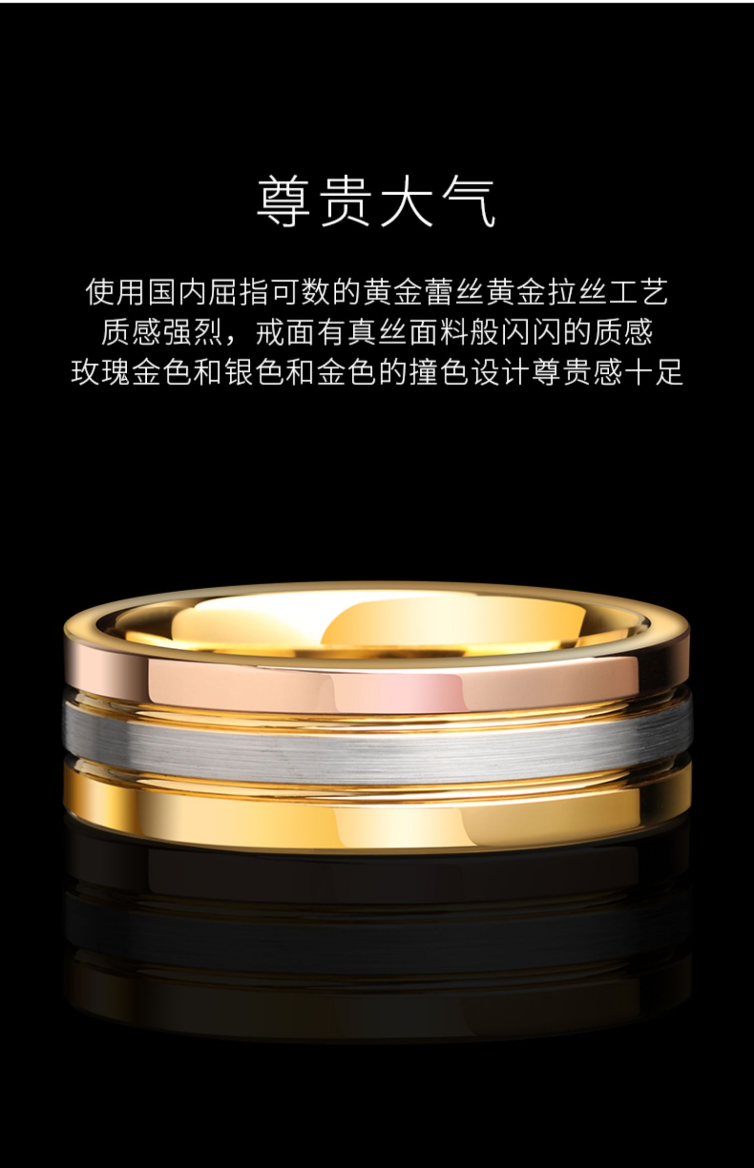 鎢金戒指男士食指三色情侶對戒高級感潮男玫瑰金小眾個性彩金指環