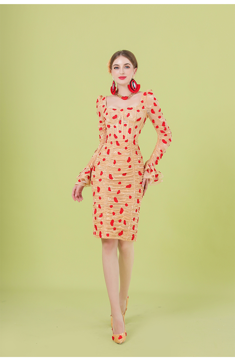 leedy me推薦手工印花訂珠多包臀裙