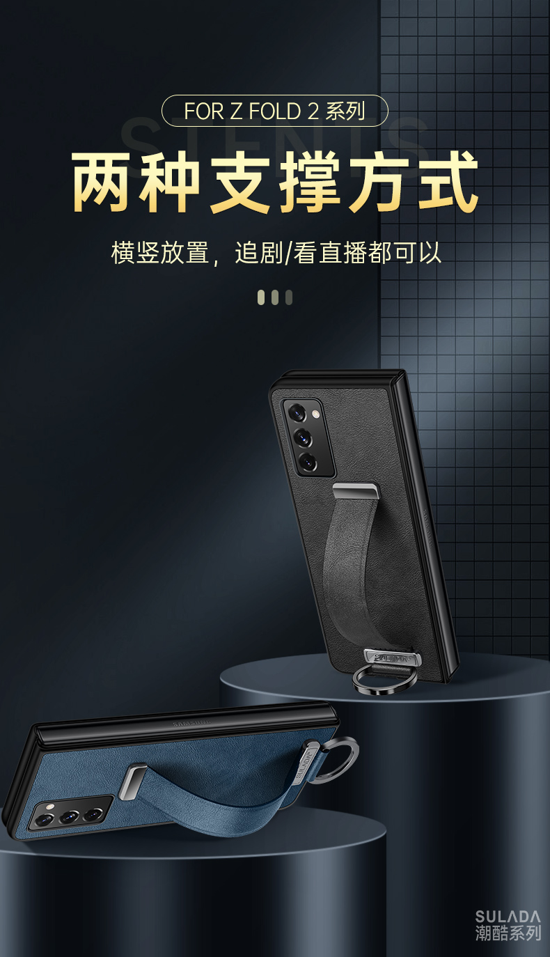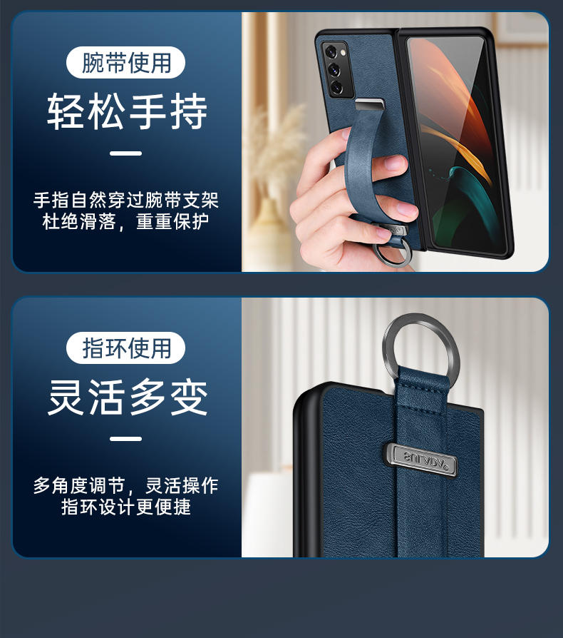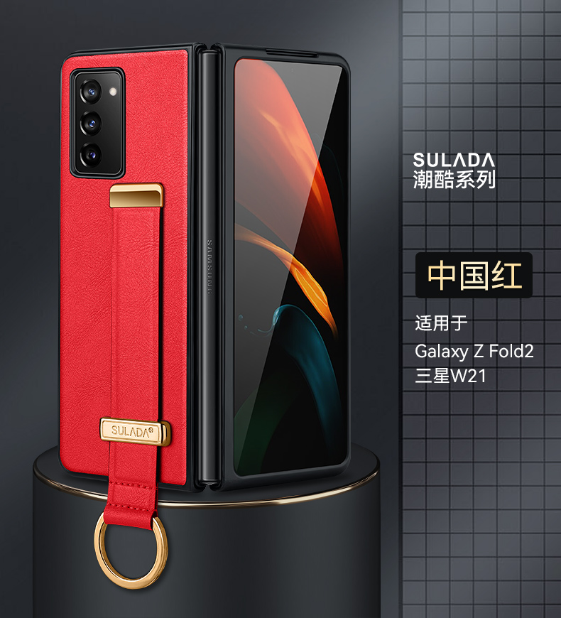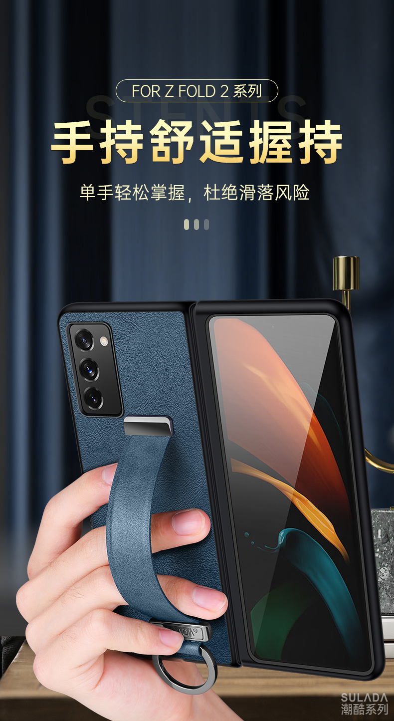 適用三星新款Z Fold2手機殼W21手機套SM-F9160牛皮套ZFOLD2男女W21支架式手腕帶防摔保護套插卡高檔原裝折疊