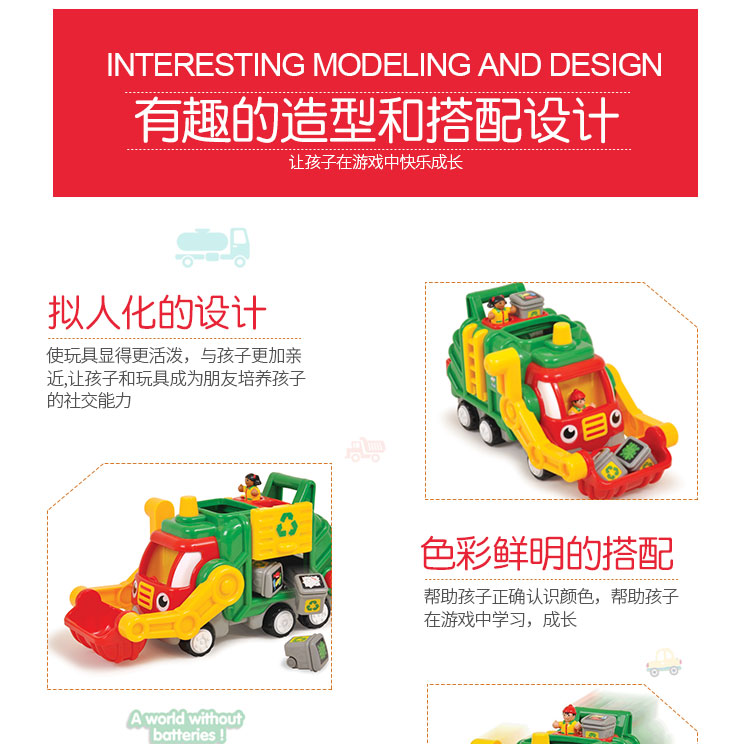英國WOW驚奇男女寶寶嬰幼兒童慣性大號耐摔玩具垃圾工程車1-5歲