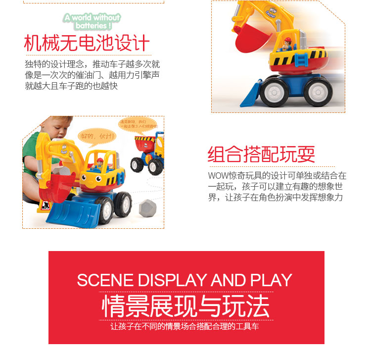 wow驚奇玩具回力益智啟蒙工程車