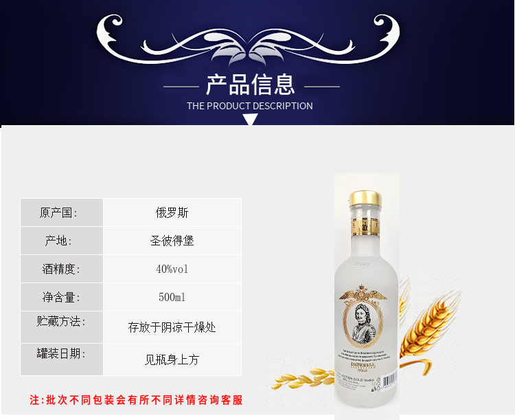 俄羅斯沙皇伏特加原裝進口金白酒