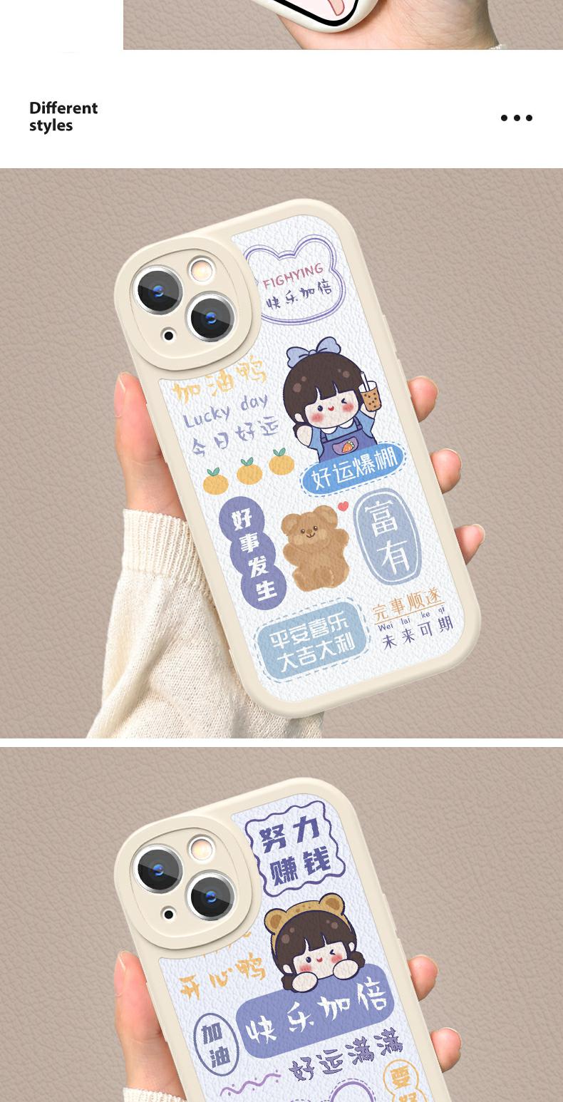 文字小熊適用iphone14手機殼蘋果13promax新款小羊皮12/11女生xr/xsmax網紅mini趣味7/8p小眾高級感6sp防摔