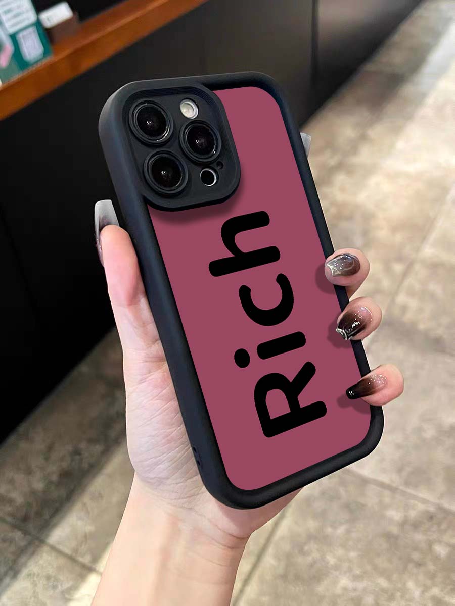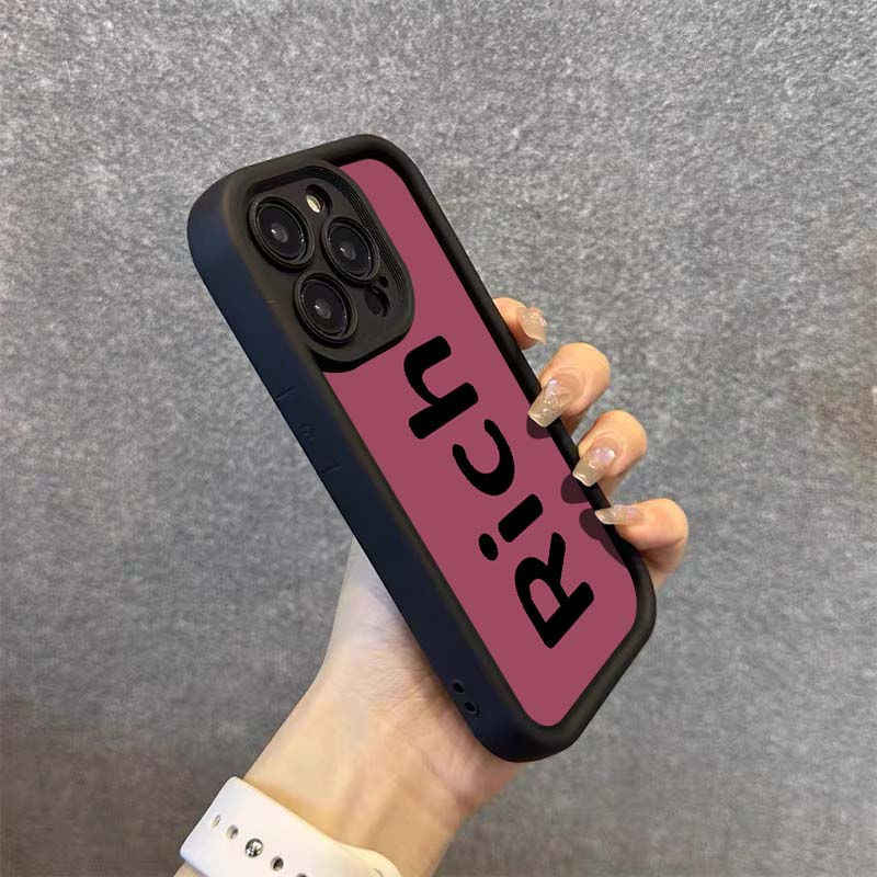 Rich英文適用于iPhone14蘋果13Promax手機殼12新款11女小眾高級感xs日韓簡約xr硅膠保護套xsmax全包防摔8plus