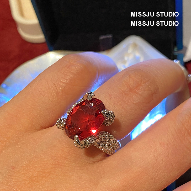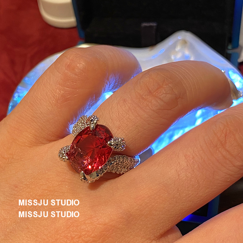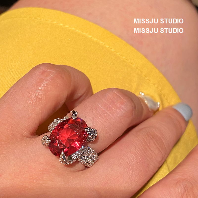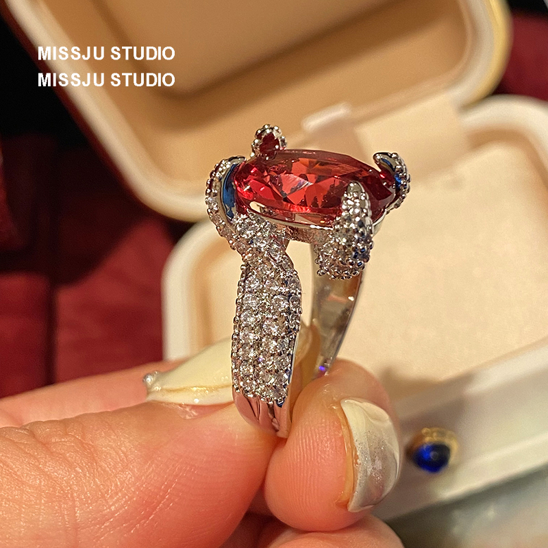 重工奢華大氣優雅鴿血紅寶石戒指女鑲嵌紅鉆高級感小眾設計立體潮
