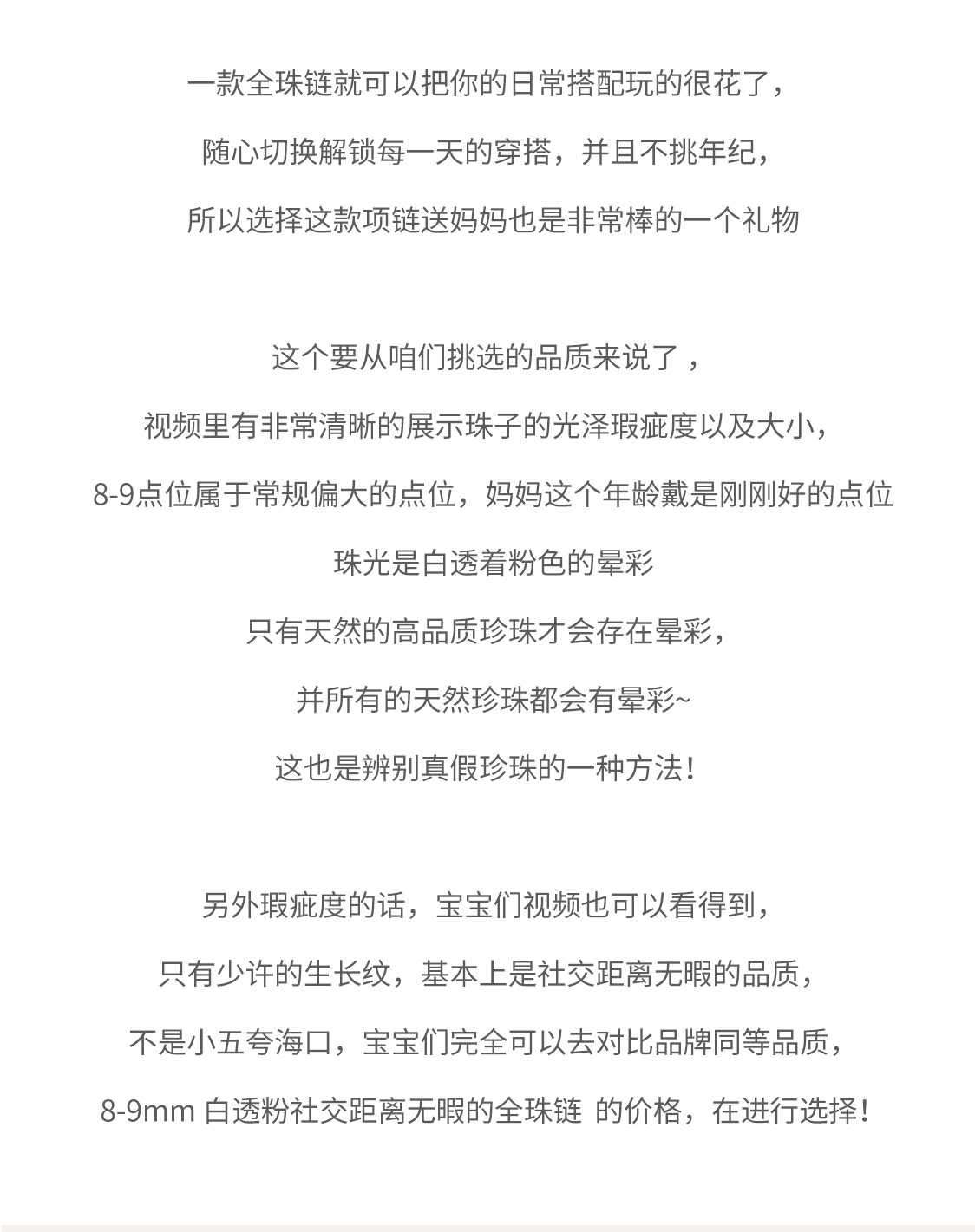 母親節禮物 珍珠項鏈8-9mm強光淡水珍珠近正圓全珠鏈項鏈送媽媽