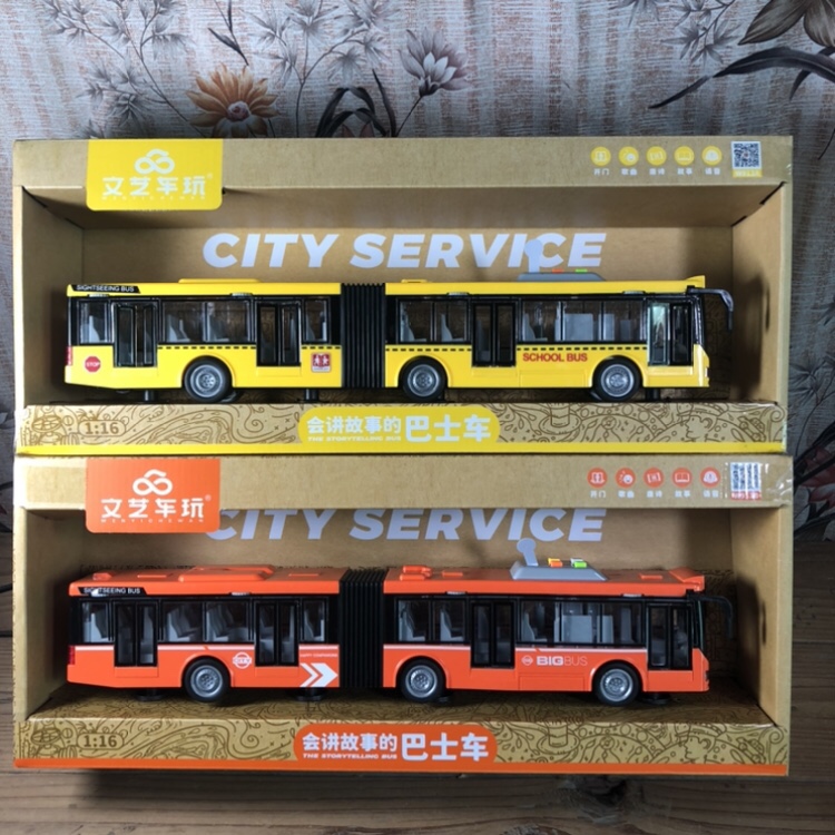 會講故事的雙節巴士兒童仿真慣性聲光手動開門塑膠公交車玩具車