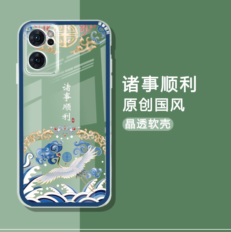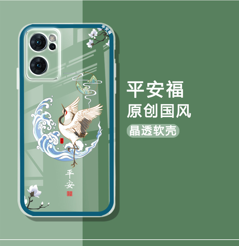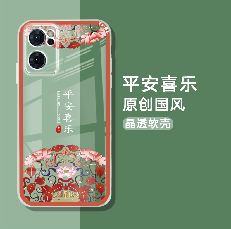適用于opporeno7手機殼透明薄女款RENO7PRO手機保護套男reno7se中國風鏡頭全包防摔新款硅膠順利好運平安國潮