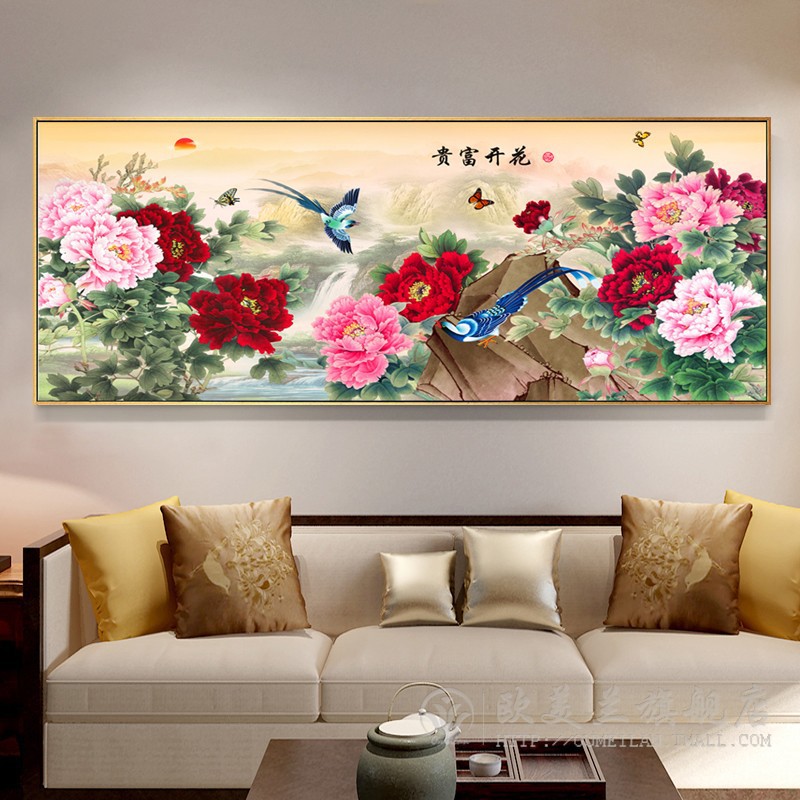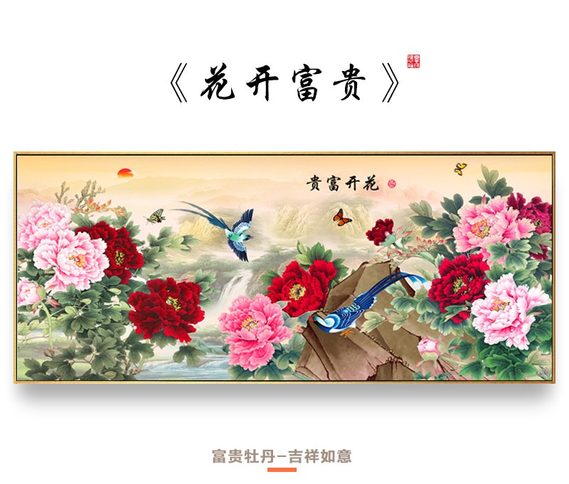 花開富貴十字繡2023新款線繡刺繡客廳自己繡簡約現代牡丹孔雀大幅