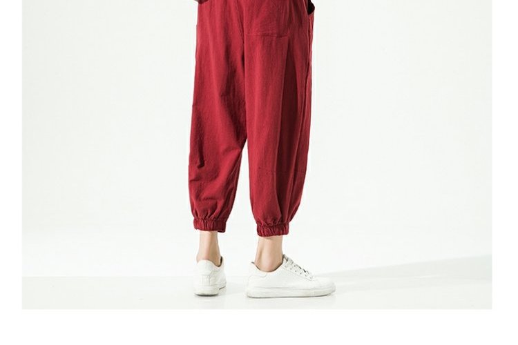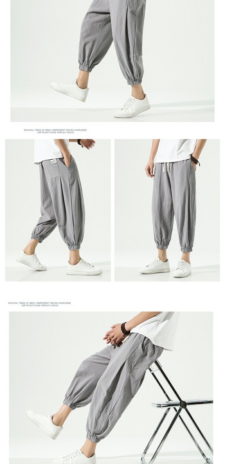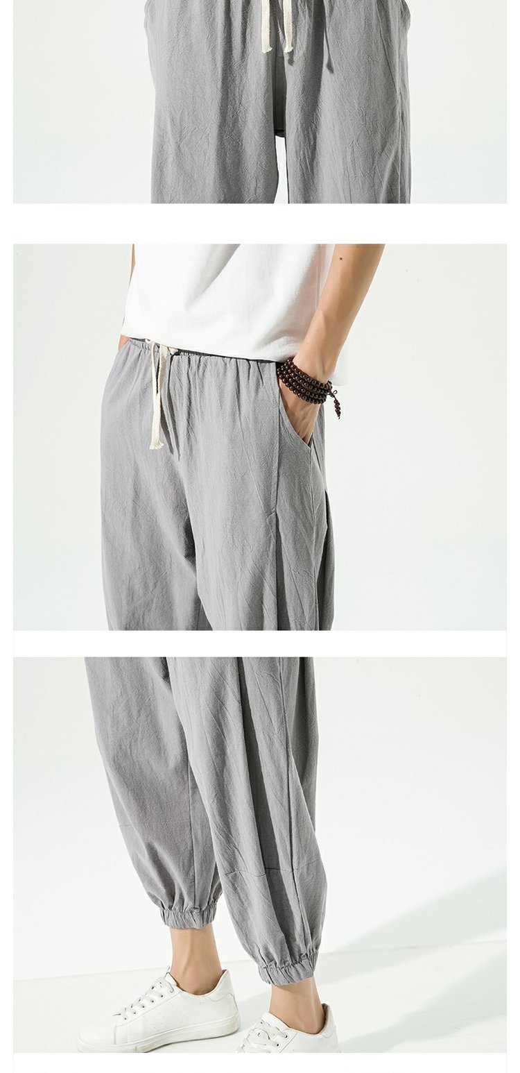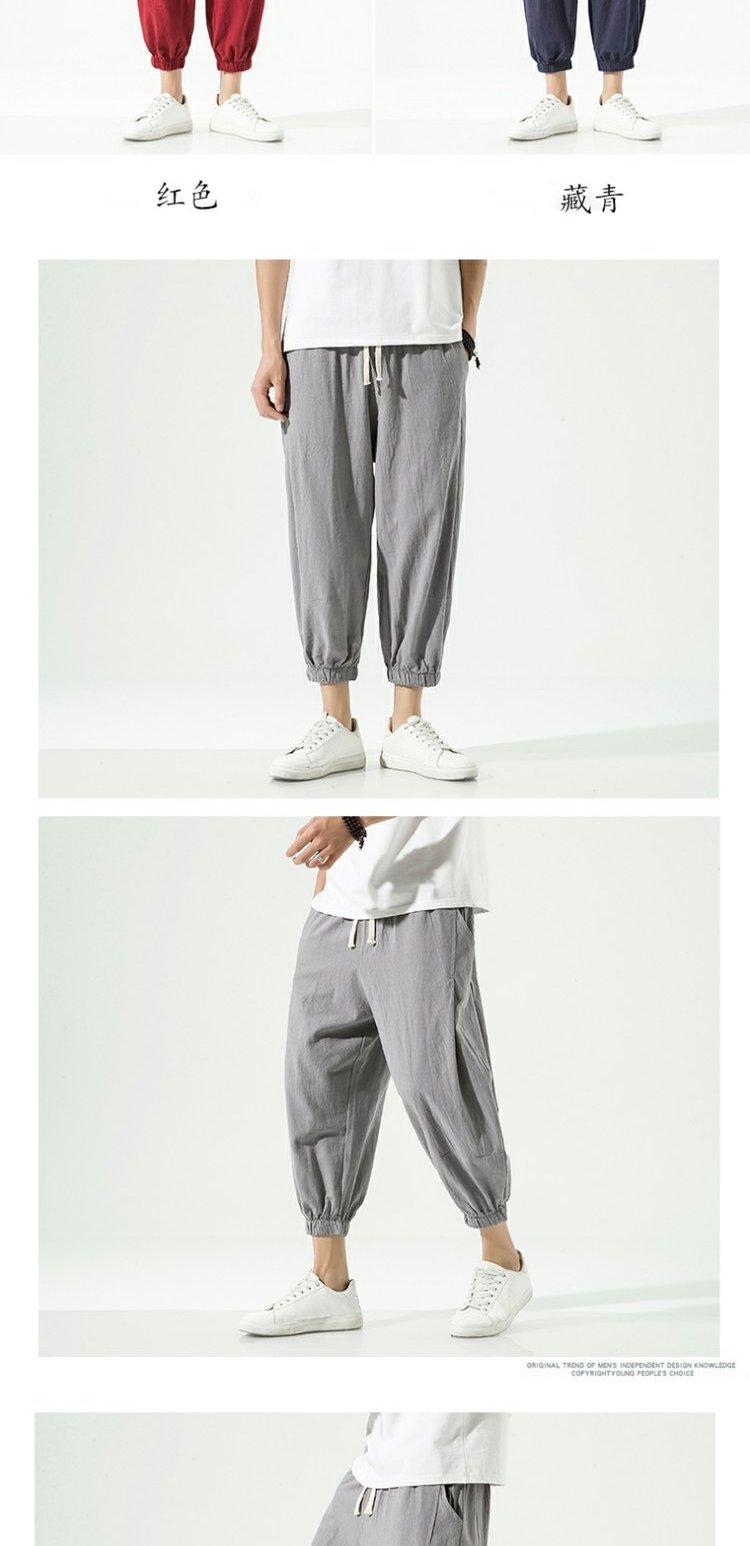 亞麻八分褲男夏季薄款寬松束腳燈籠褲大碼直筒哈倫褲休閑棉麻褲子