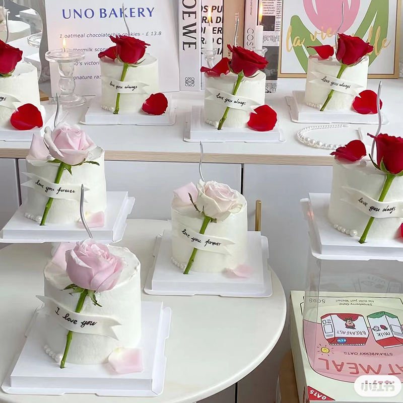 520情人節ins風蛋糕裝飾玫瑰花情侶紀念日浪漫簡約蛋糕LOVE插件