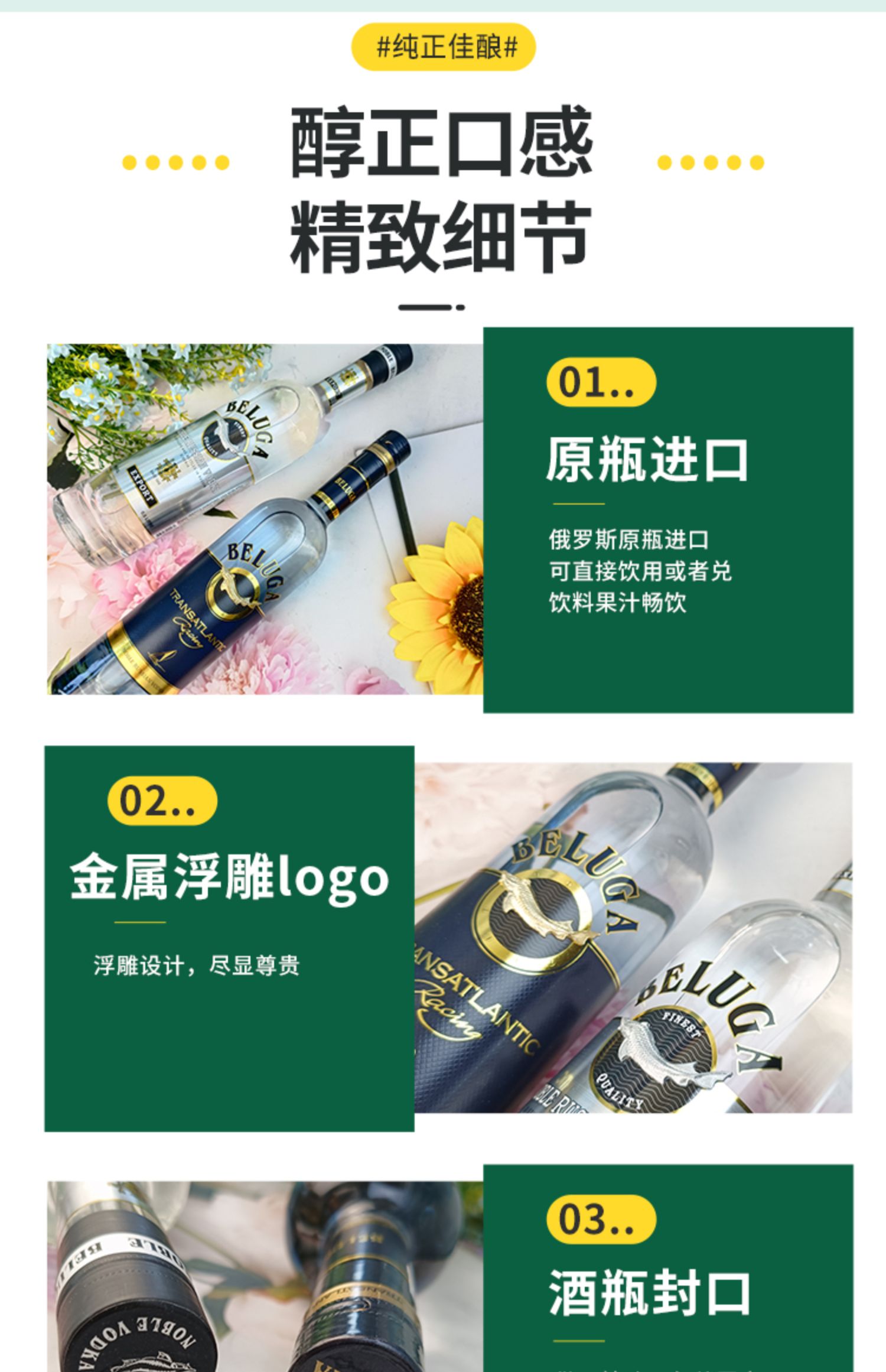 俄羅斯白鯨伏特加銀鱘魚金鱘魚白酒