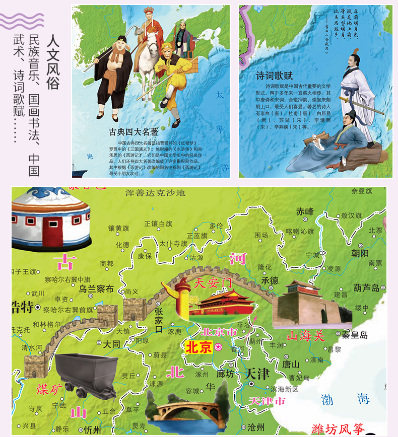 山海經+觀山海+中國地圖世界地圖 原著正版全集無刪減彩繪版圖解山海經全18卷原文白話文注解小學生四年級課外閱讀書觀山海異獸錄