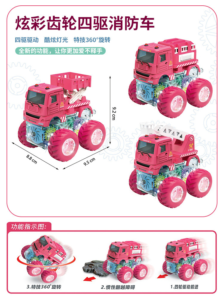 仿真慣性大腳車工程軍事導彈越野車炫酷燈光消防汽車耐摔寶寶玩具