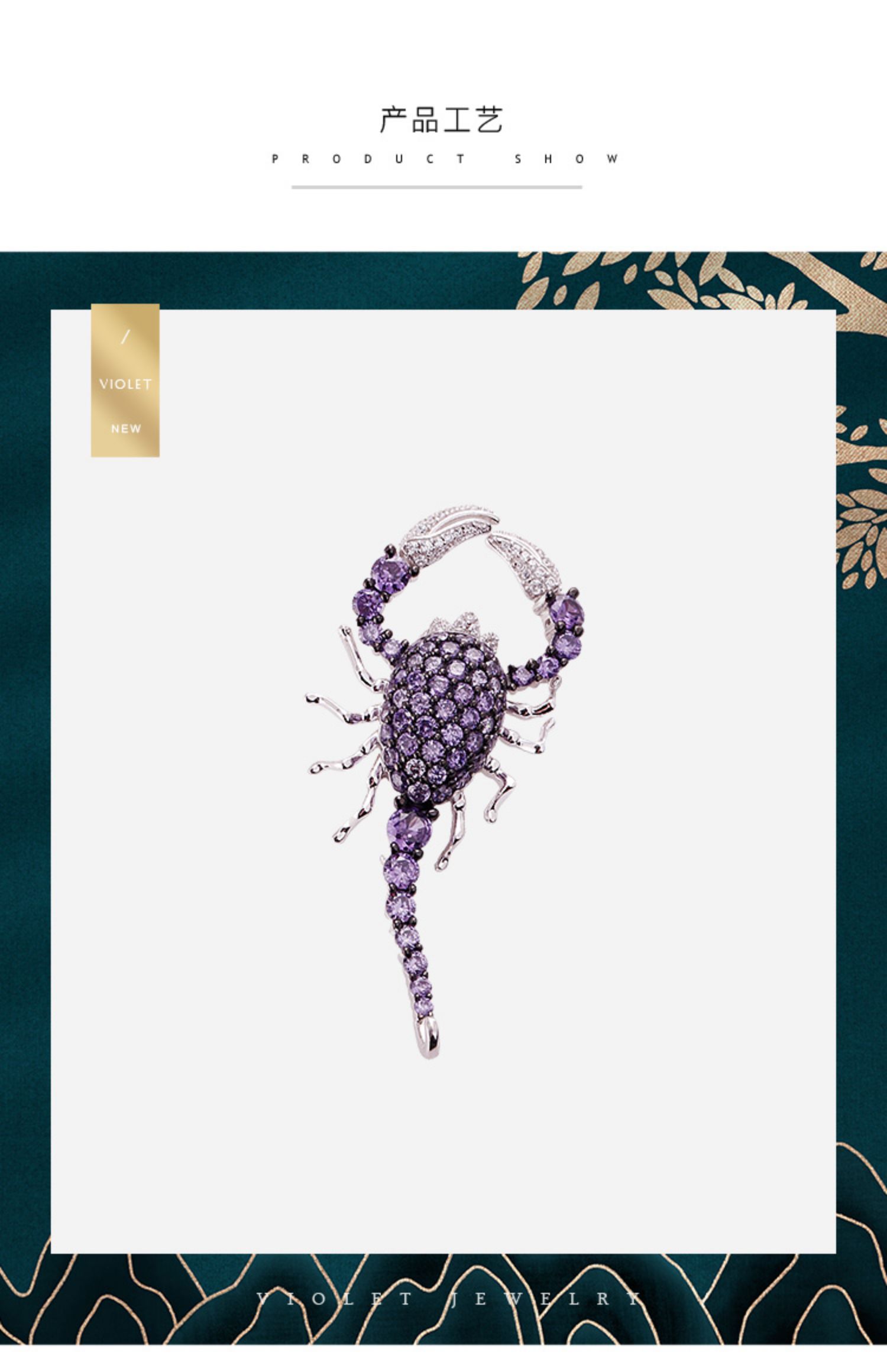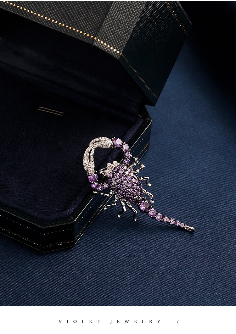 紫羅蘭梓蝎S925純銀胸針高檔女精致小巧時尚可愛胸花小眾設計別針