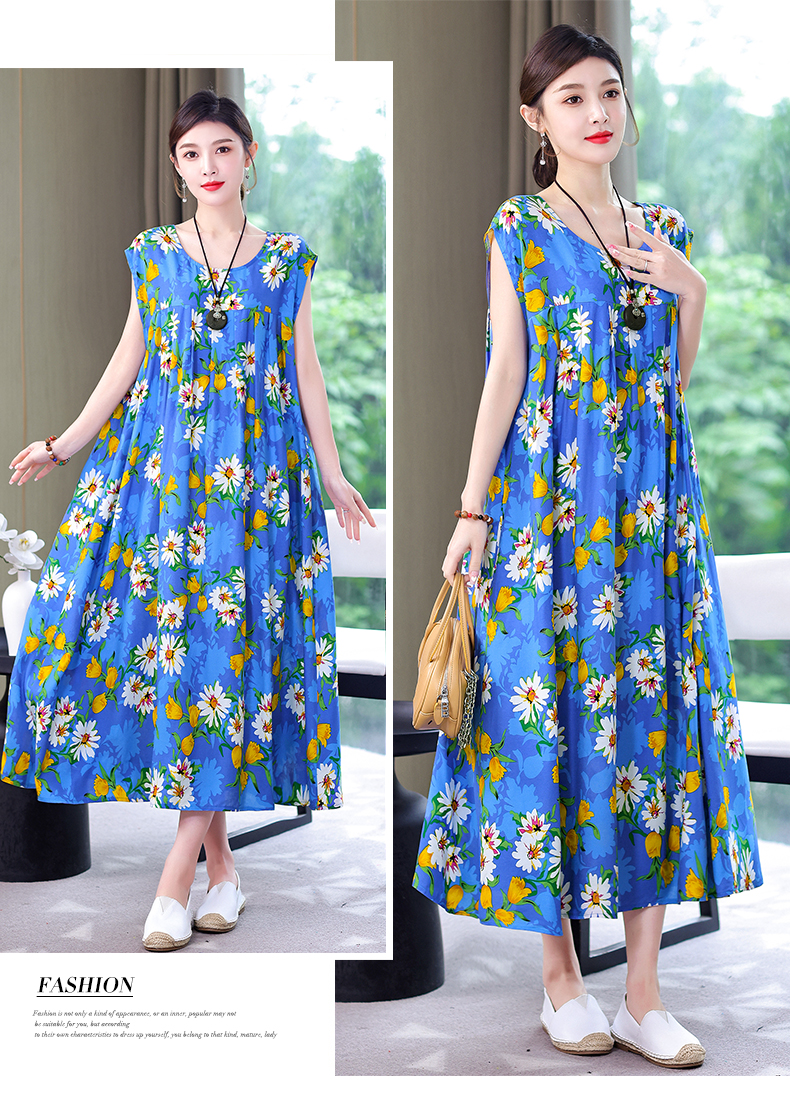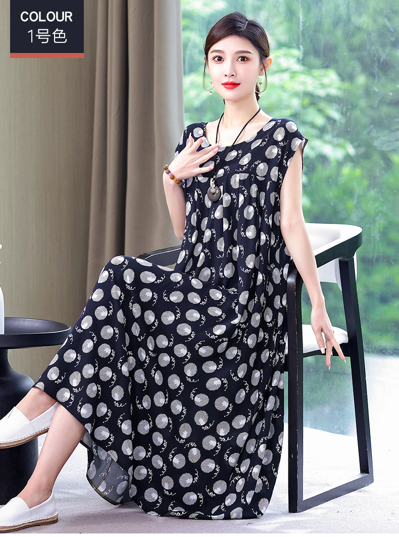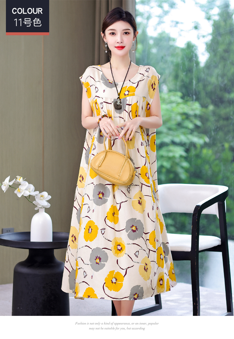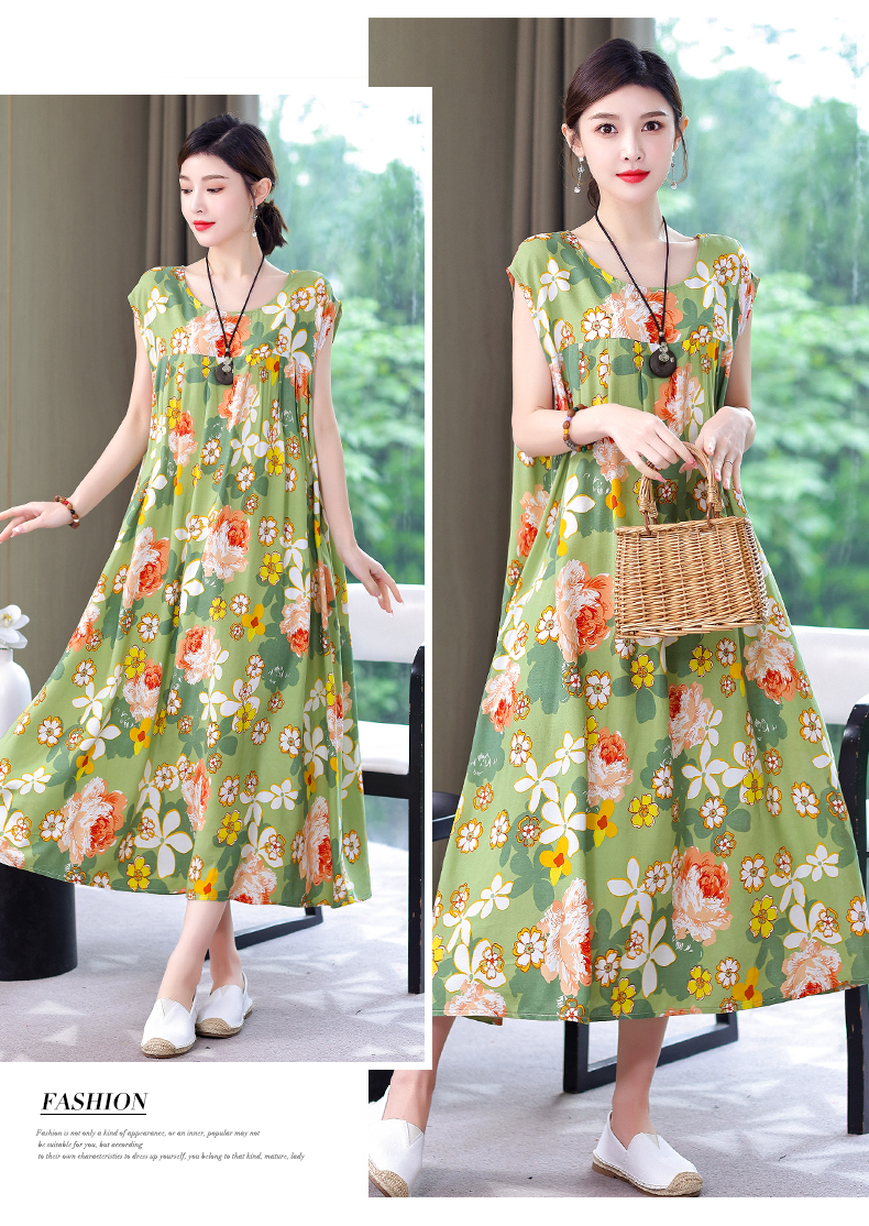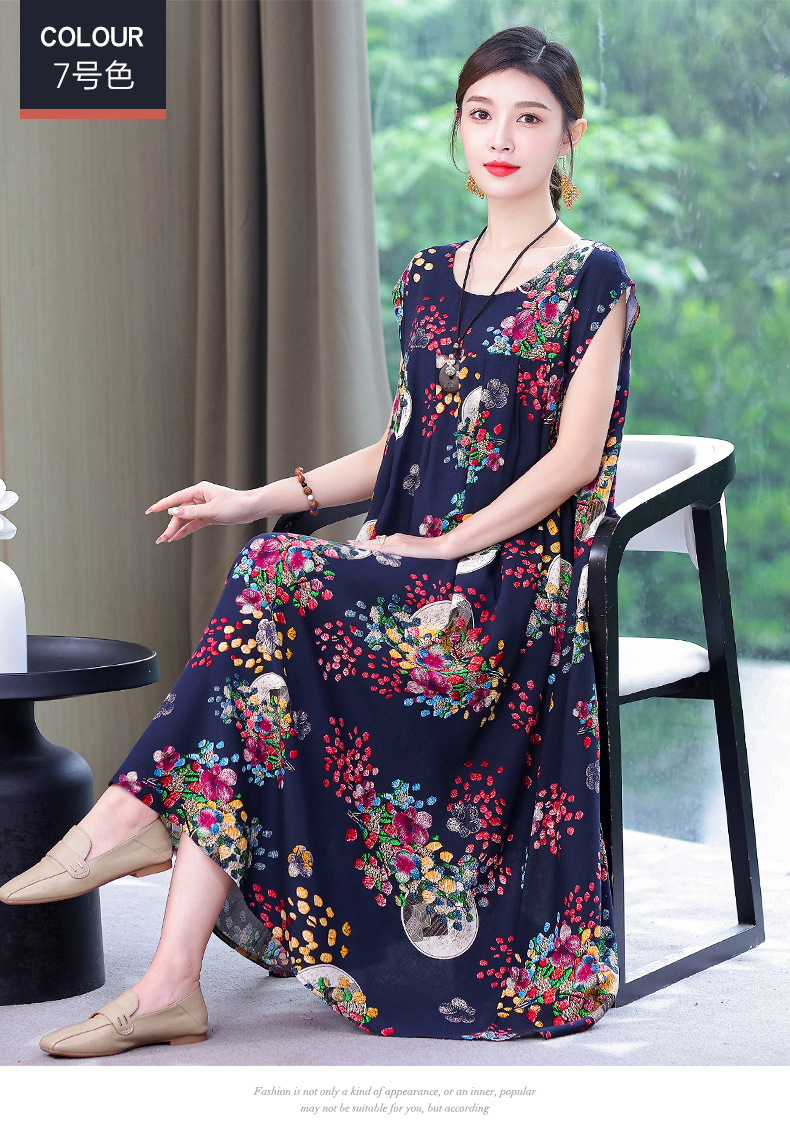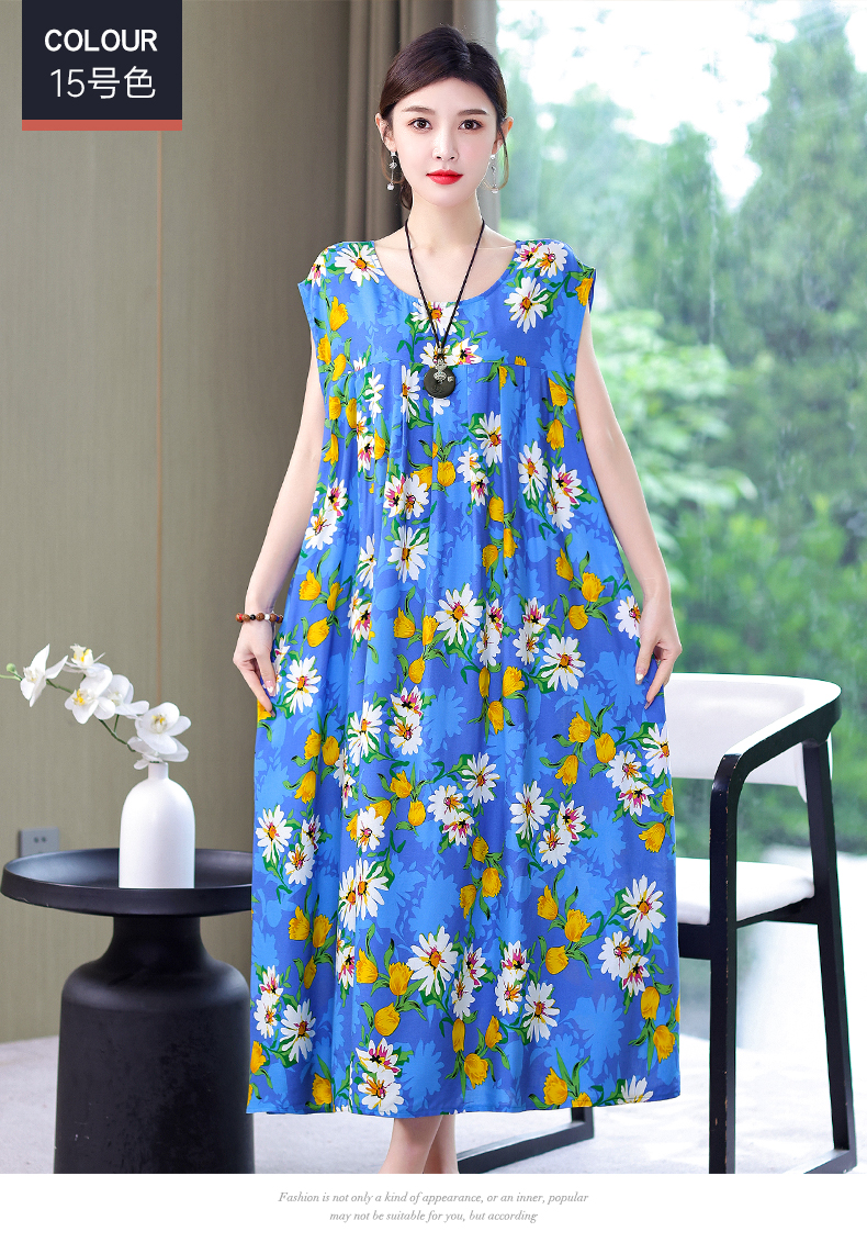2023年新款夏季中老年媽媽裝棉綢連衣裙女長款加肥加大碼寬松裙子