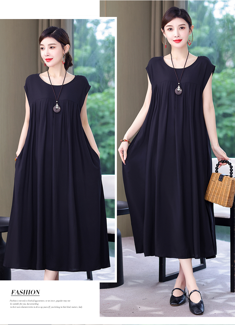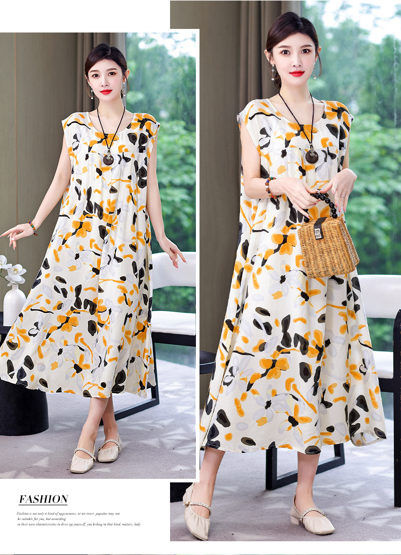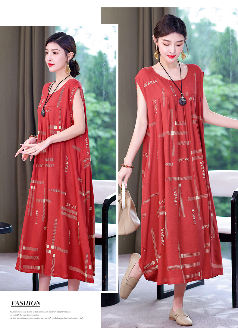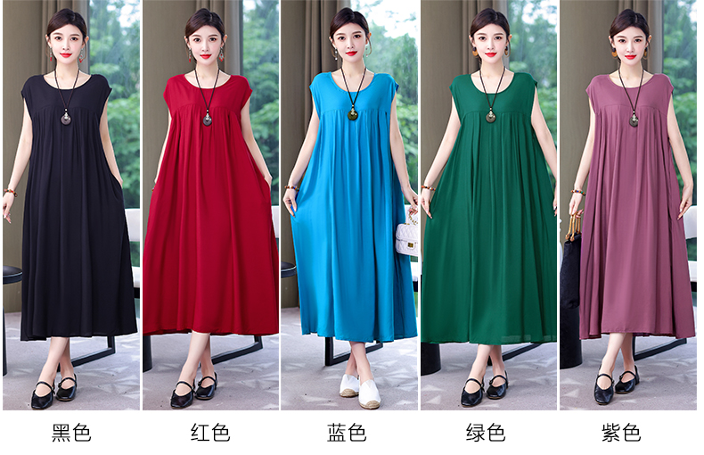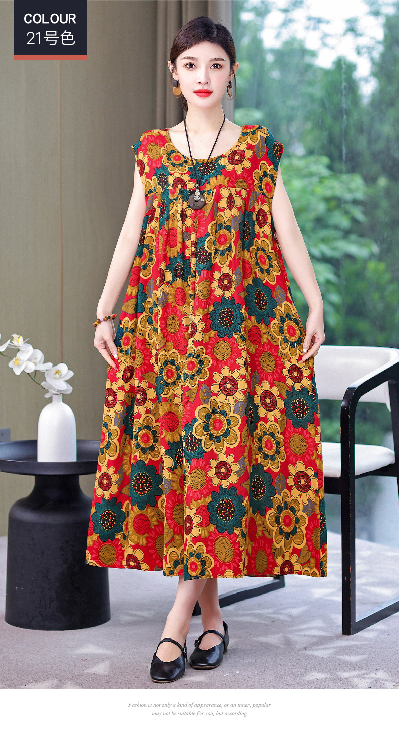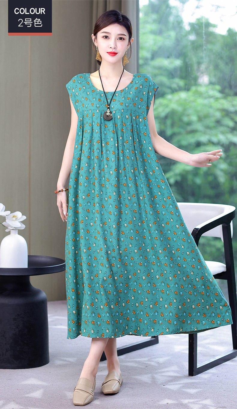 2023年新款夏季中老年媽媽裝棉綢連衣裙女長款加肥加大碼寬松裙子