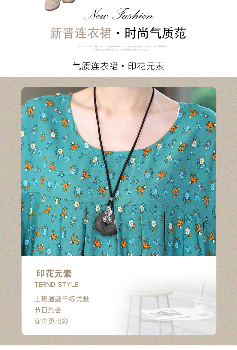 新款氣質洋氣貴夫人棉綢連衣裙夏季女裝碎花媽媽中老年人造棉裙子