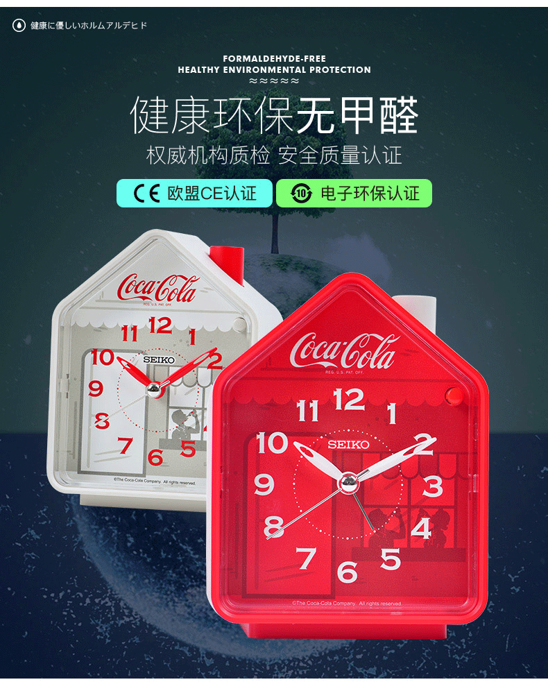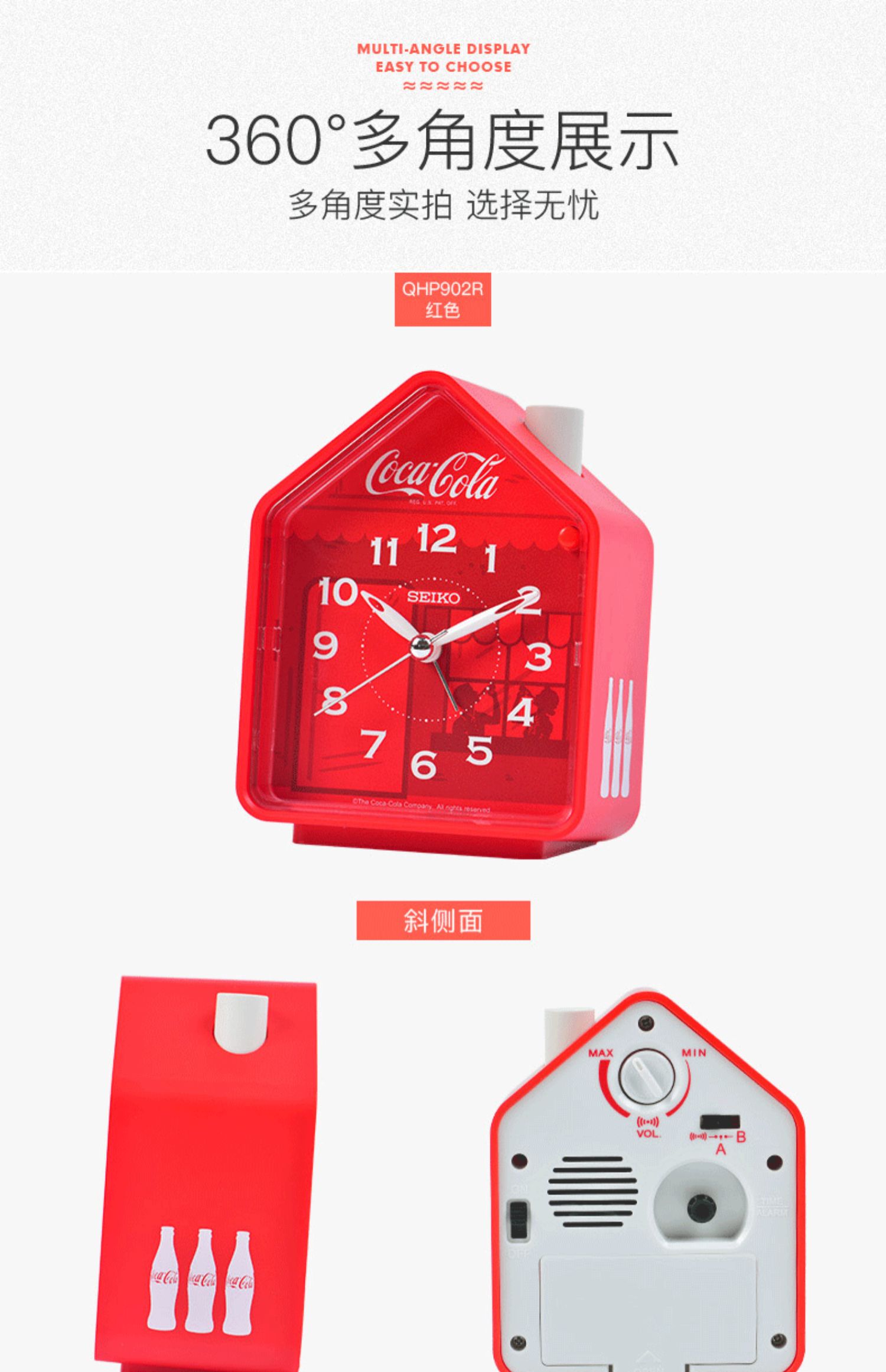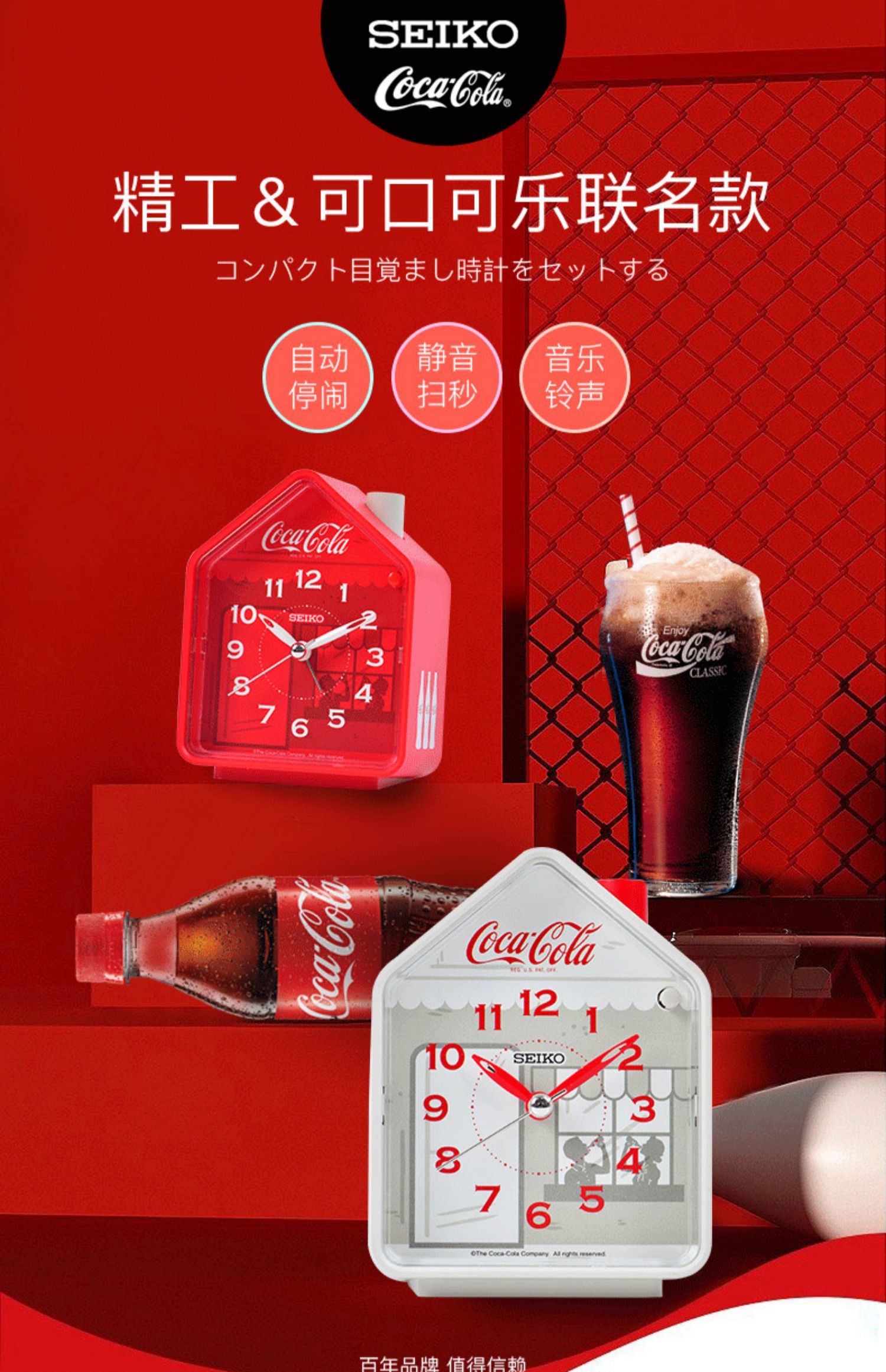 SEIKO日本精工靜音貪睡臥室夜燈布谷鳥叫可口可樂聯名音樂鬧鐘