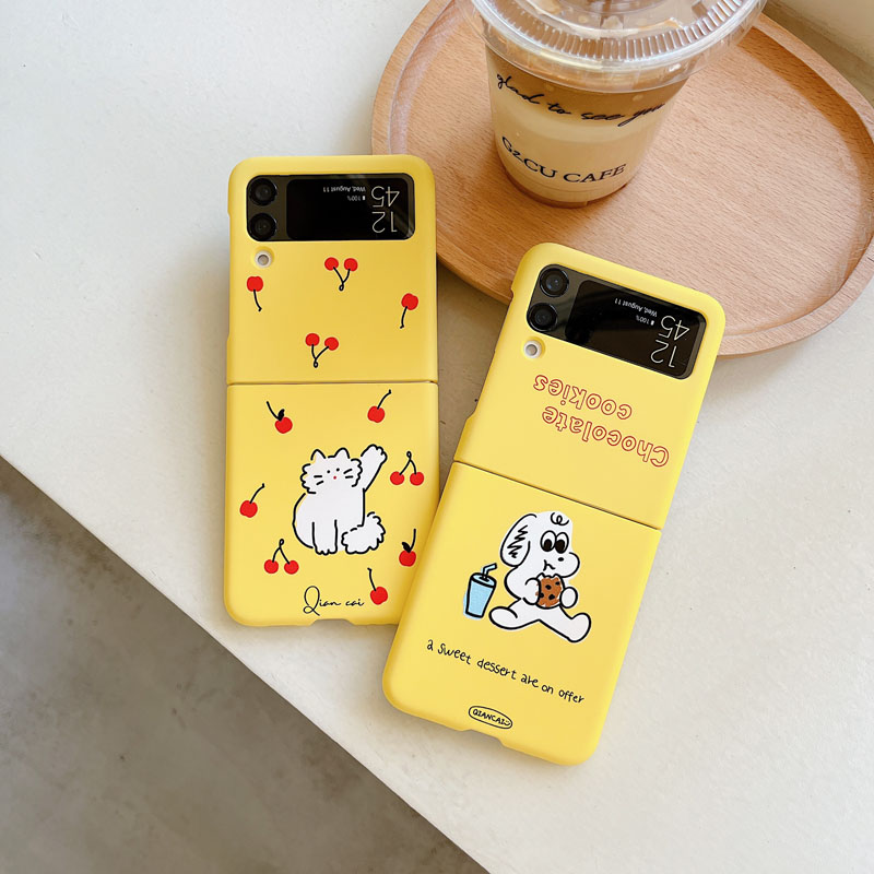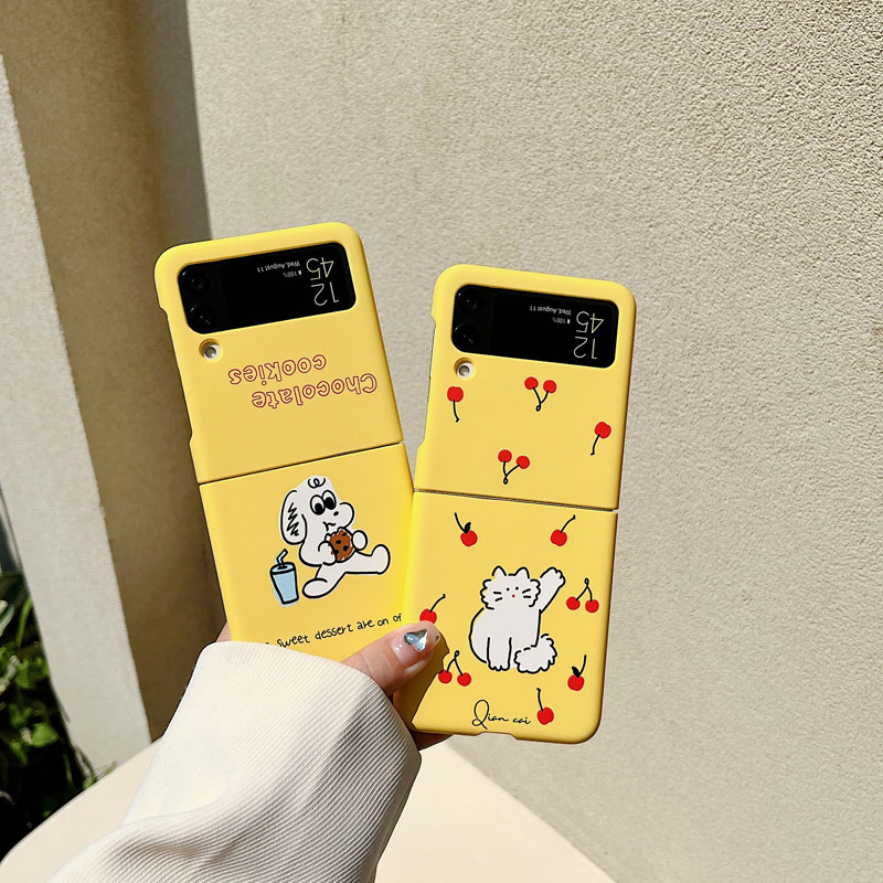 適用三星zflip5手機殼可愛簡約韓風卡通動物貓咪小狗保護套zlfip4磨砂純色清新糖果膚感zflip 3硬黃貓狗flip4