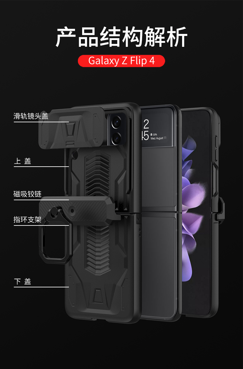 TENND.T適用于三星z flip4手機殼折疊屏保護套磁吸鉸鏈sm-f7210全包防摔指環支架galaxy帶鏡頭推拉窗滑蓋男