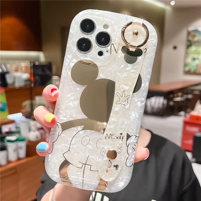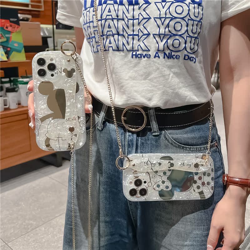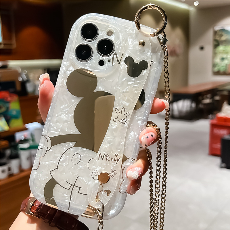 卡通迪士尼適用iphone13ProMax斜挎手機殼14plus腕帶12鏈條11全包