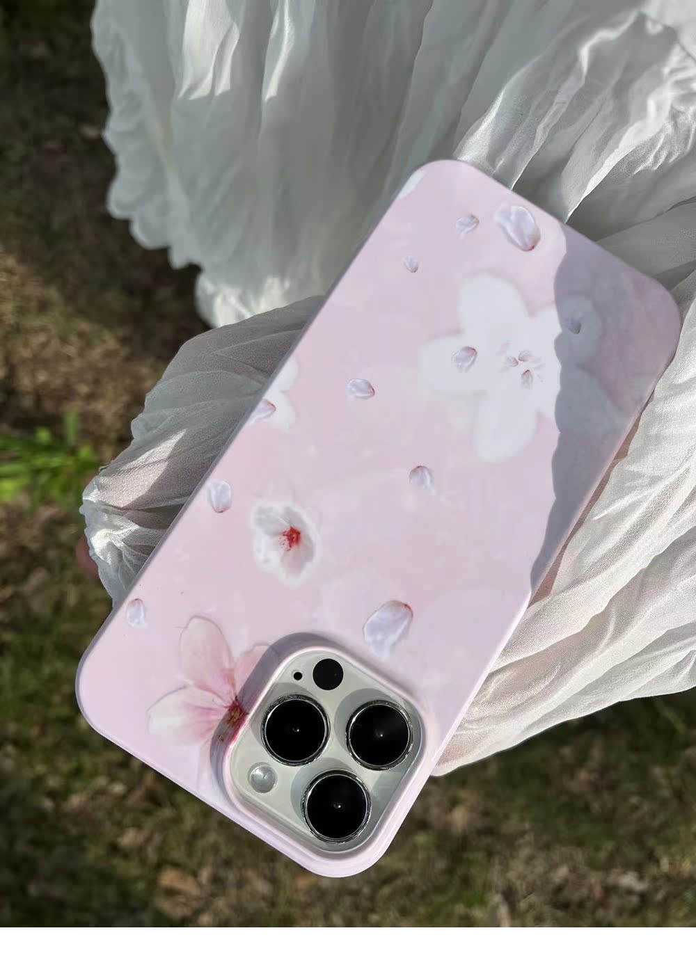 櫻花樹下 原創粉色菲林殼imd全包邊適用于蘋果13promax小眾簡約風