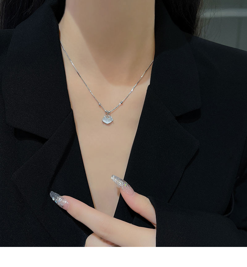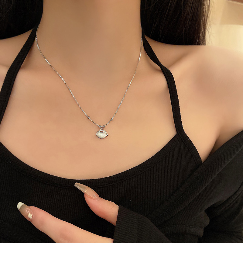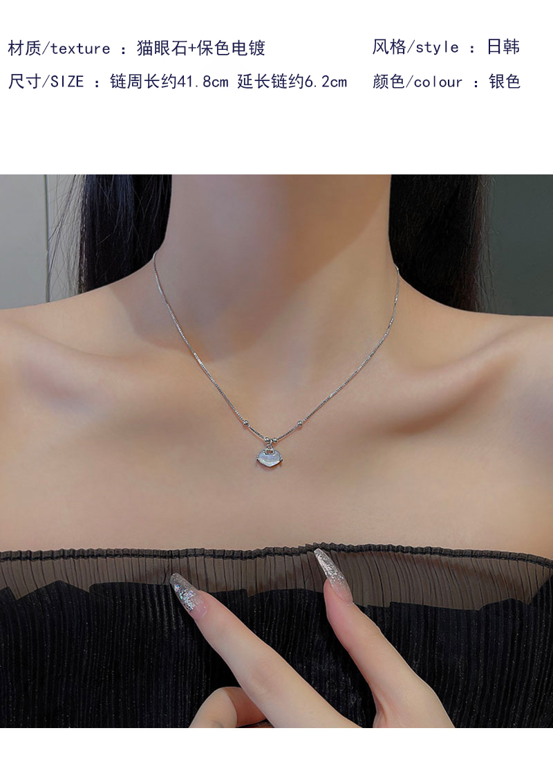 UNBEATEN平安鎖貓眼石吊墜項鏈女潮輕奢小眾高級感簡約百搭鎖骨鏈