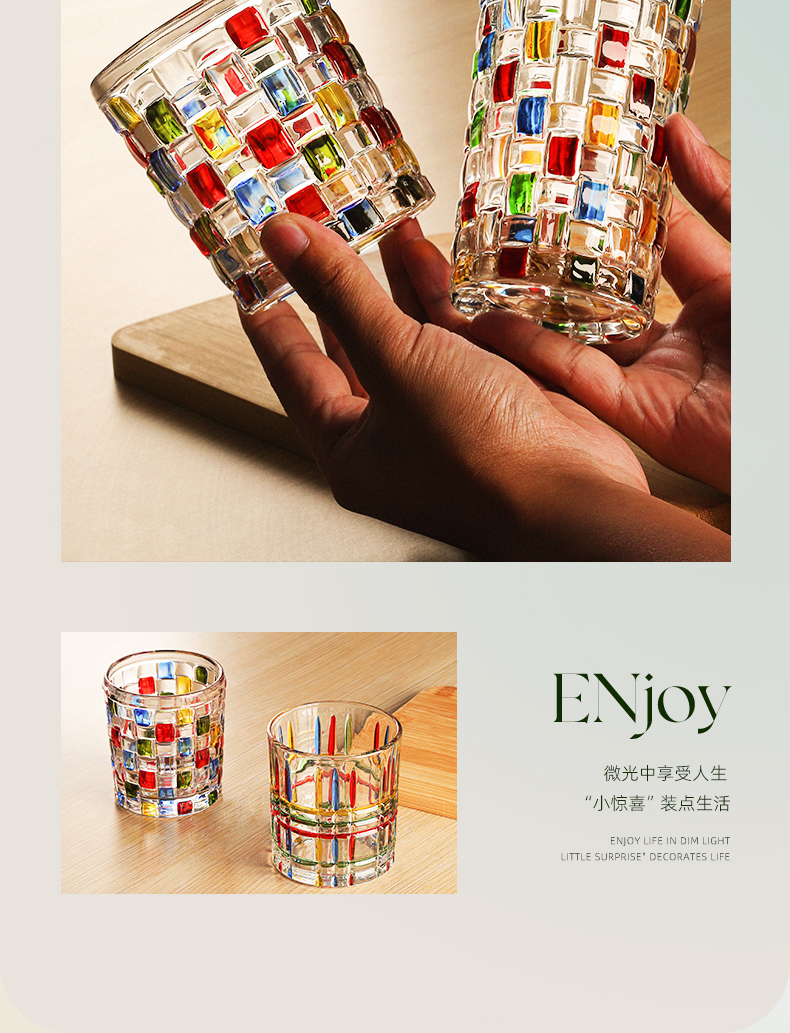 blingbling折射彩虹光中古杯 ins小眾手繪玻璃水杯威士忌杯果汁杯