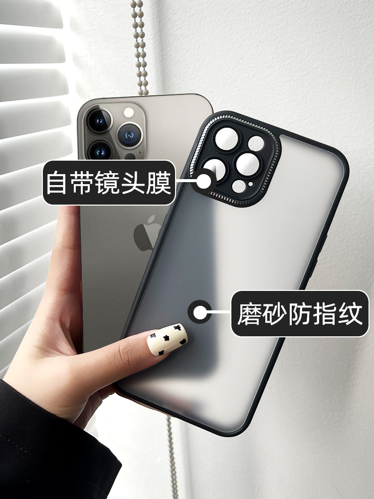 軒晴 全包鏡頭膜/高級半透明磨砂適用iphone14pro手機殼蘋果14proMax簡約黑色13新款12高品質防摔保護套男女