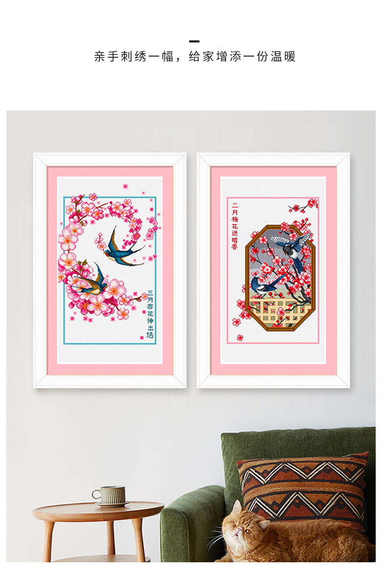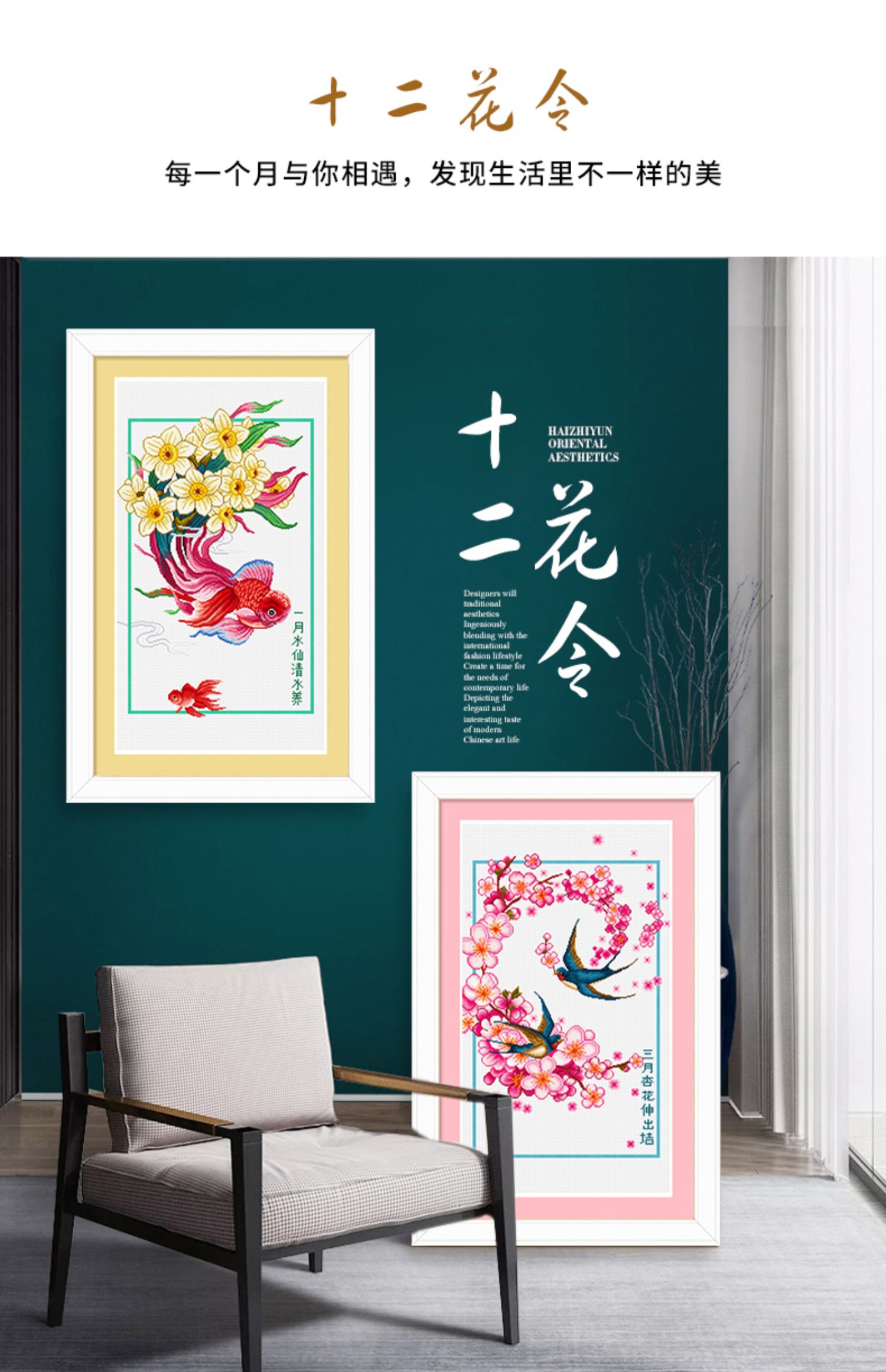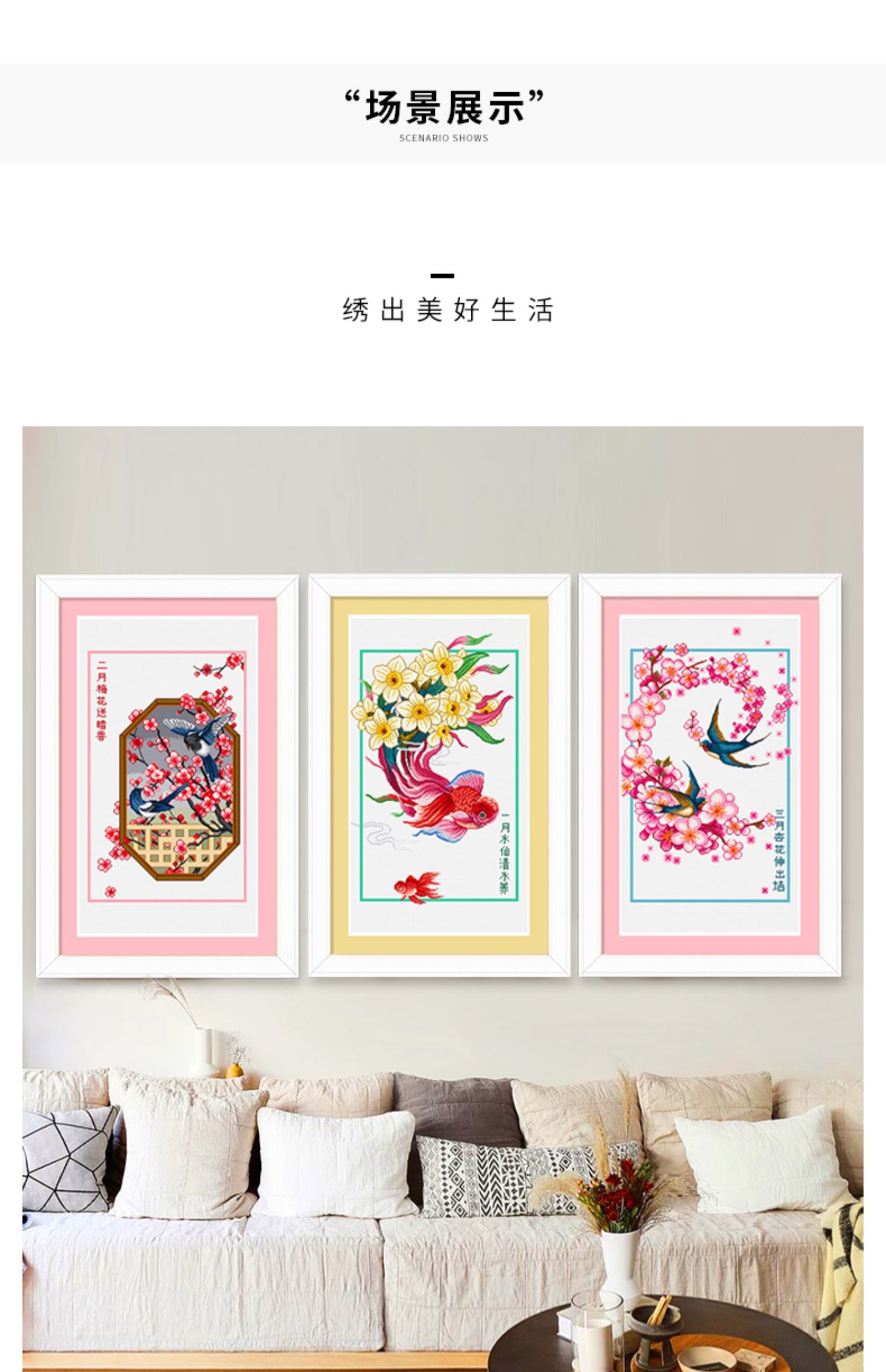春天十字繡2023線繡新款客廳十二時花令1月2月3月手工繡簡單小件