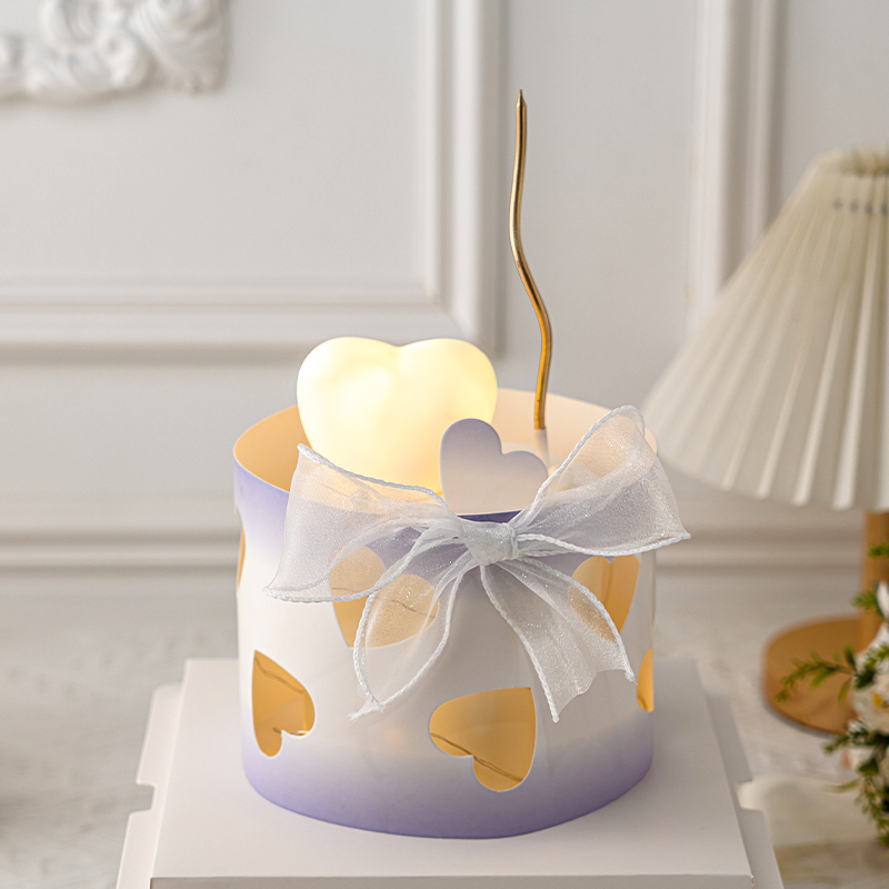 七夕情人節皇冠小熊愛心燈蛋糕裝飾鏤空愛心圍邊擺件情侶告白甜品