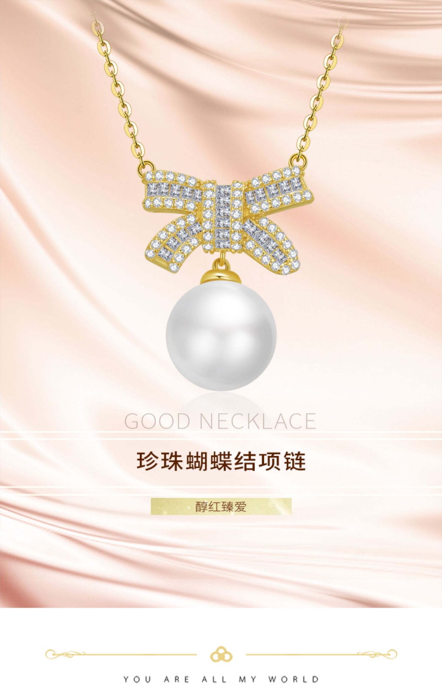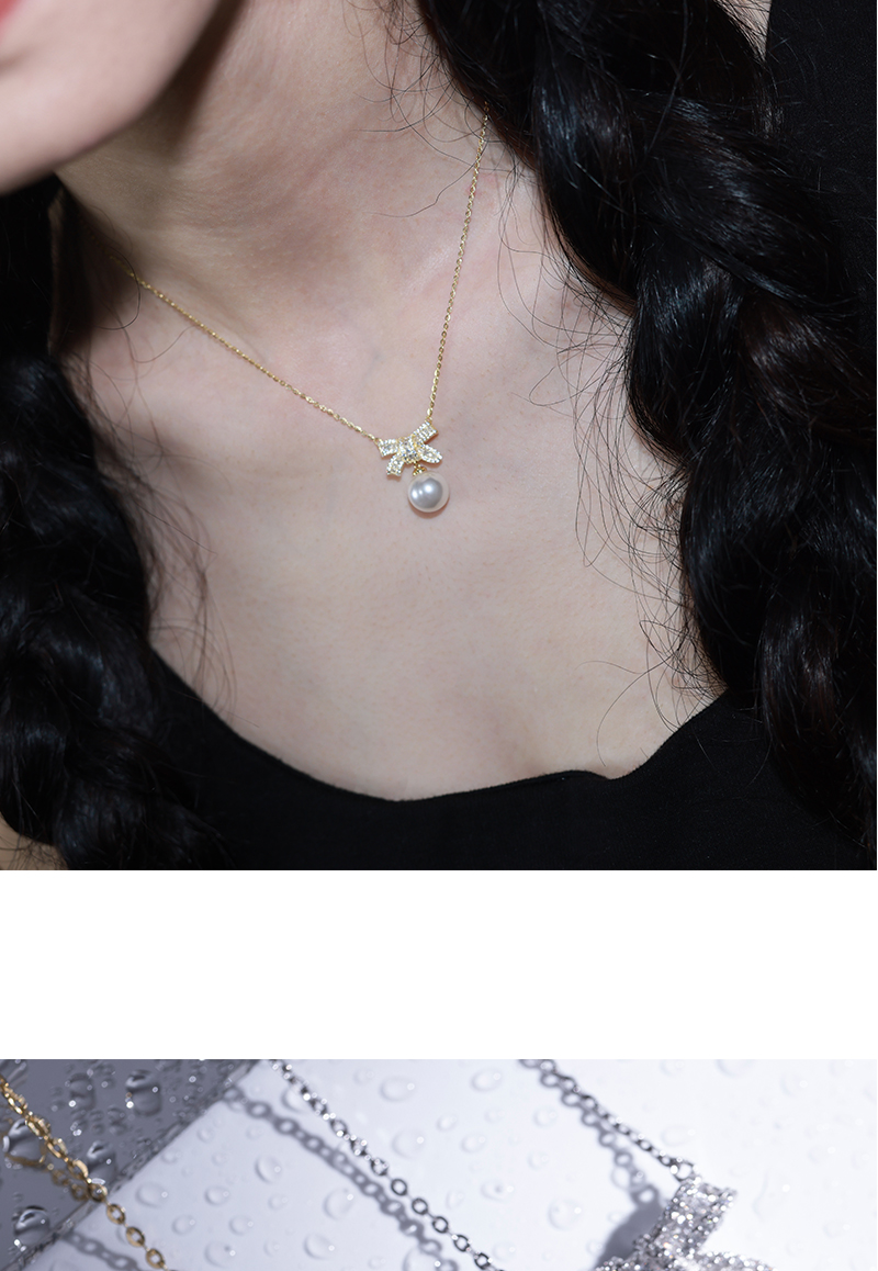 蝴蝶結珍珠項鏈925純銀情人銀飾輕奢小眾精致鎖骨鏈禮物