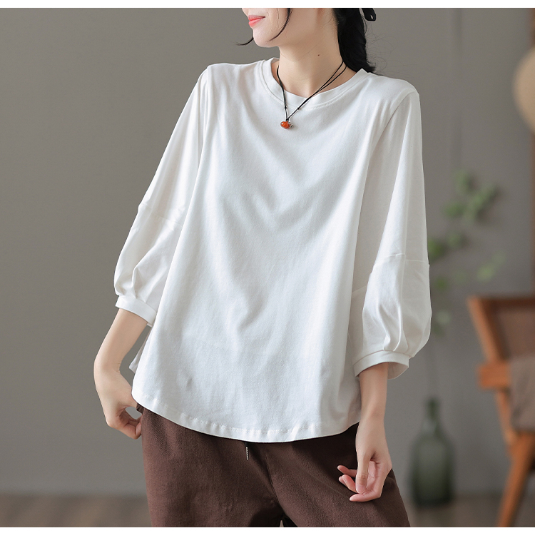dza復古純棉白色長袖t恤女士2023秋新款寬松短款上衣內搭打底體恤