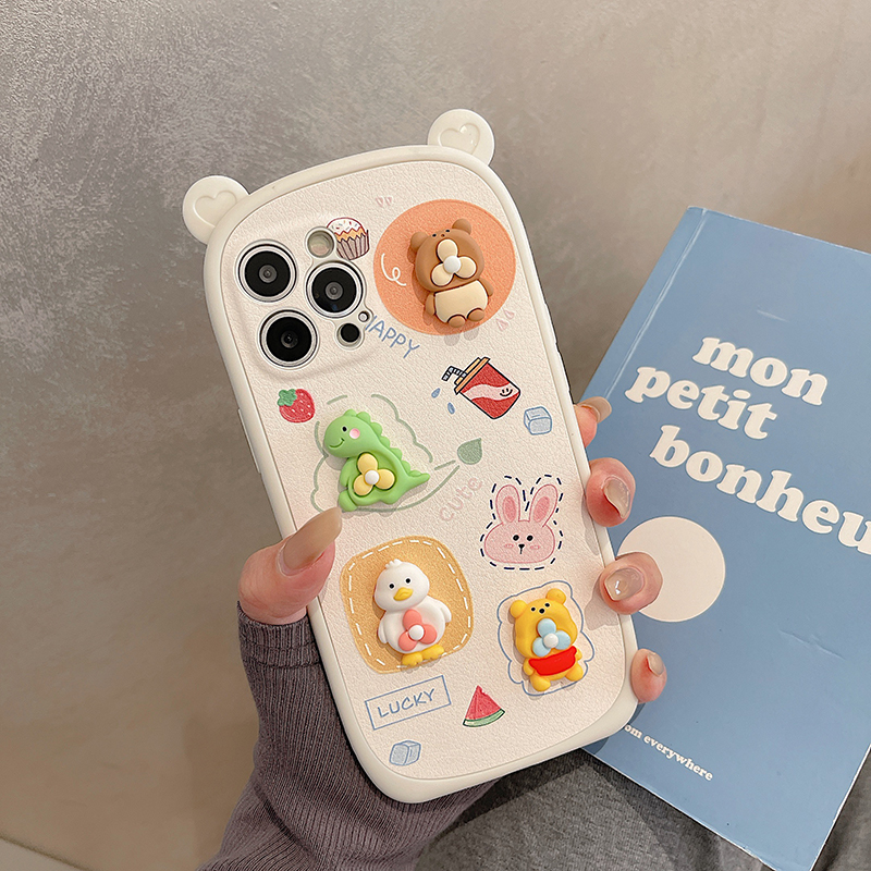 夏日ins立體恐龍小熊適用iphone13手機殼12pro蘋果x女款xr高級感xs磨砂max/14/xsmax全包8plus/7p/11promax套
