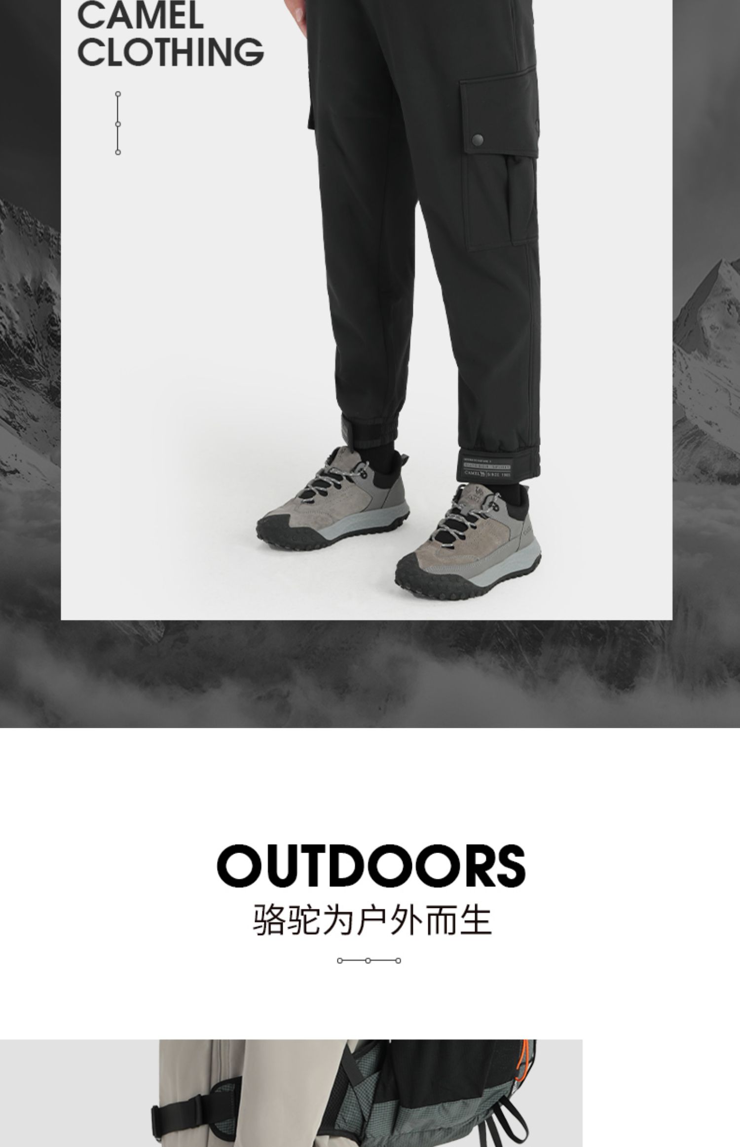 駱駝男裝工裝休閑褲男秋季2023新款寬松運動褲戶外束腳百搭長褲子