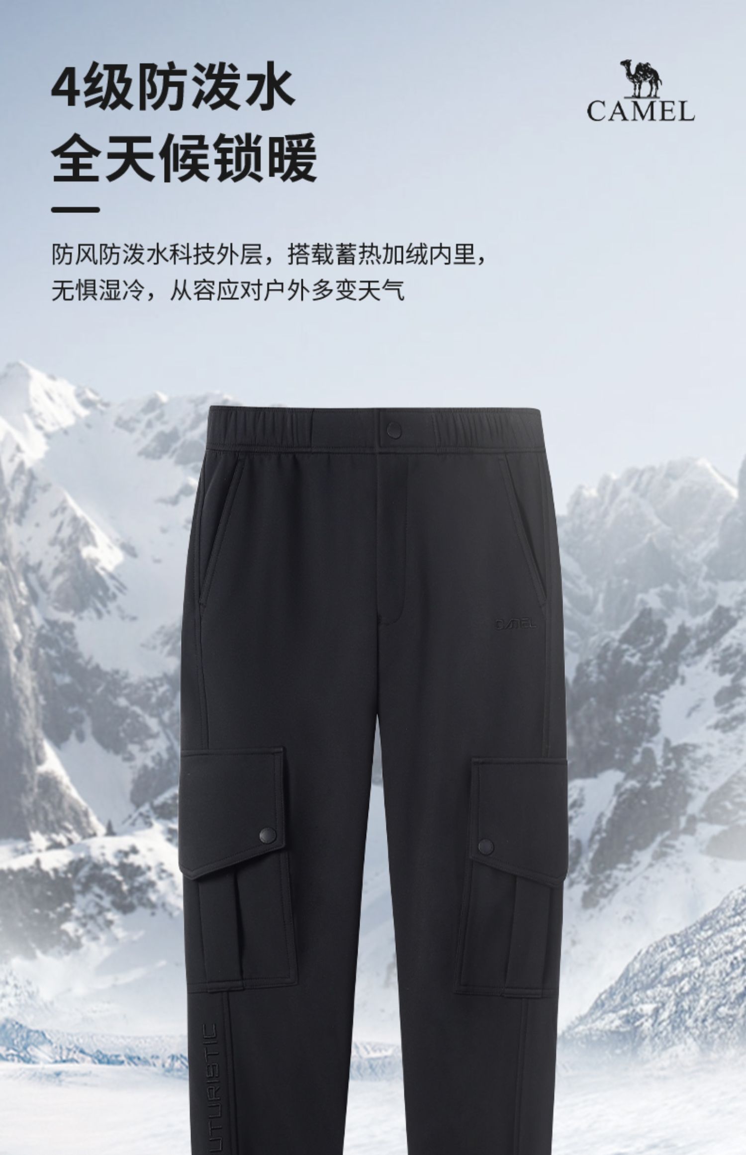 駱駝男裝工裝褲男冬季2023新款加絨加厚保暖運動束腳防水休閑長褲