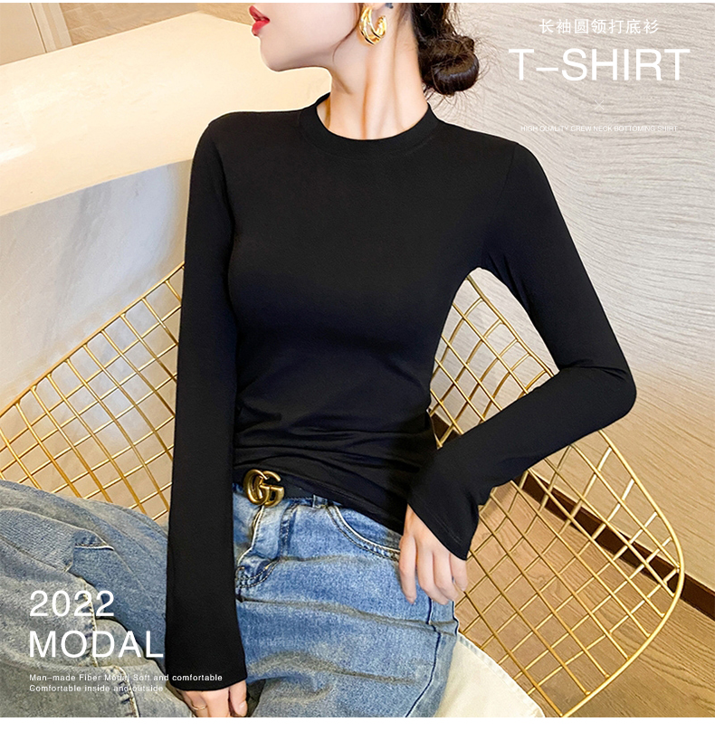 莫代爾長袖打底衫女秋冬內搭修身面膜肌底衣T恤圓領薄款秋衣2023