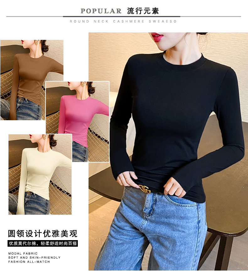 莫代爾女春秋冬內搭洋氣圓領打底衫