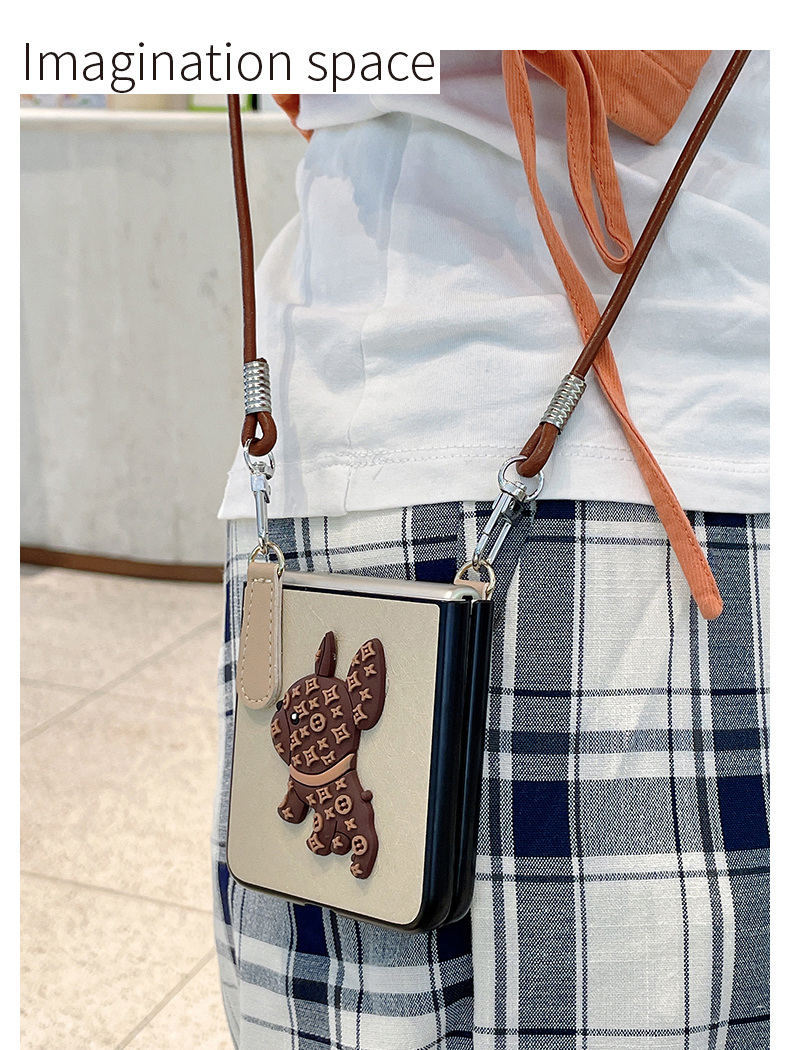 適用于三星Zflip4手機殼奢華狗狗三星Galaxy Z flip4折疊屏皮紋殼復古5G防摔斜挎保護套高級感時尚女款