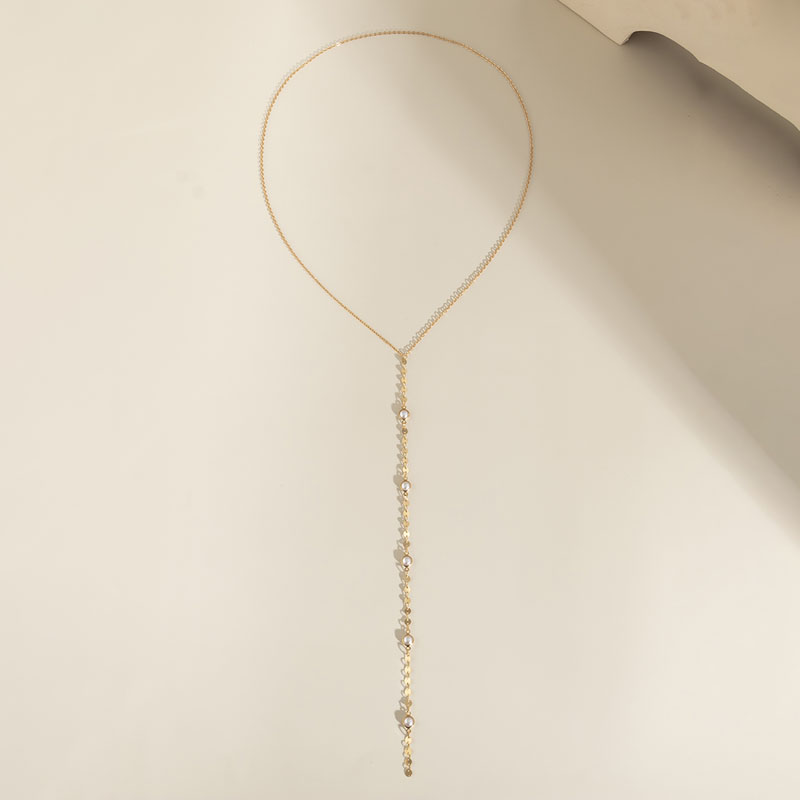編織扁骨蛇鏈項鏈女 歐美夏季時尚性感深V長款流蘇鎖骨鏈配飾品