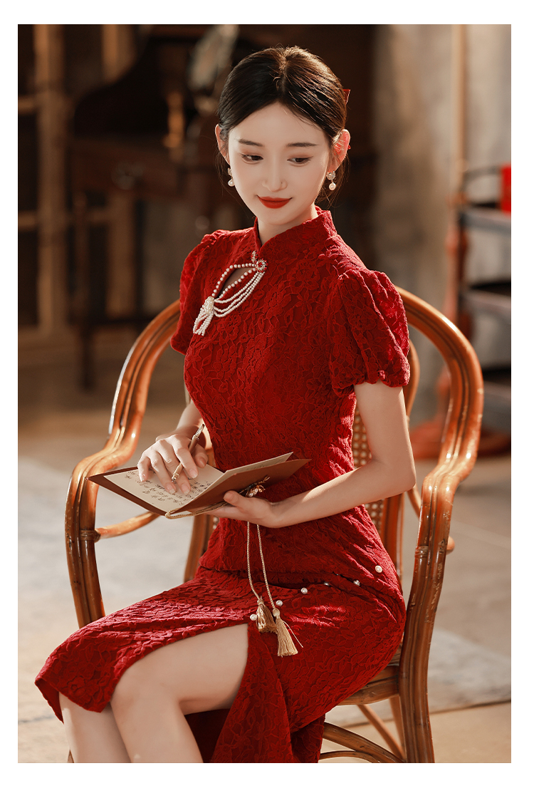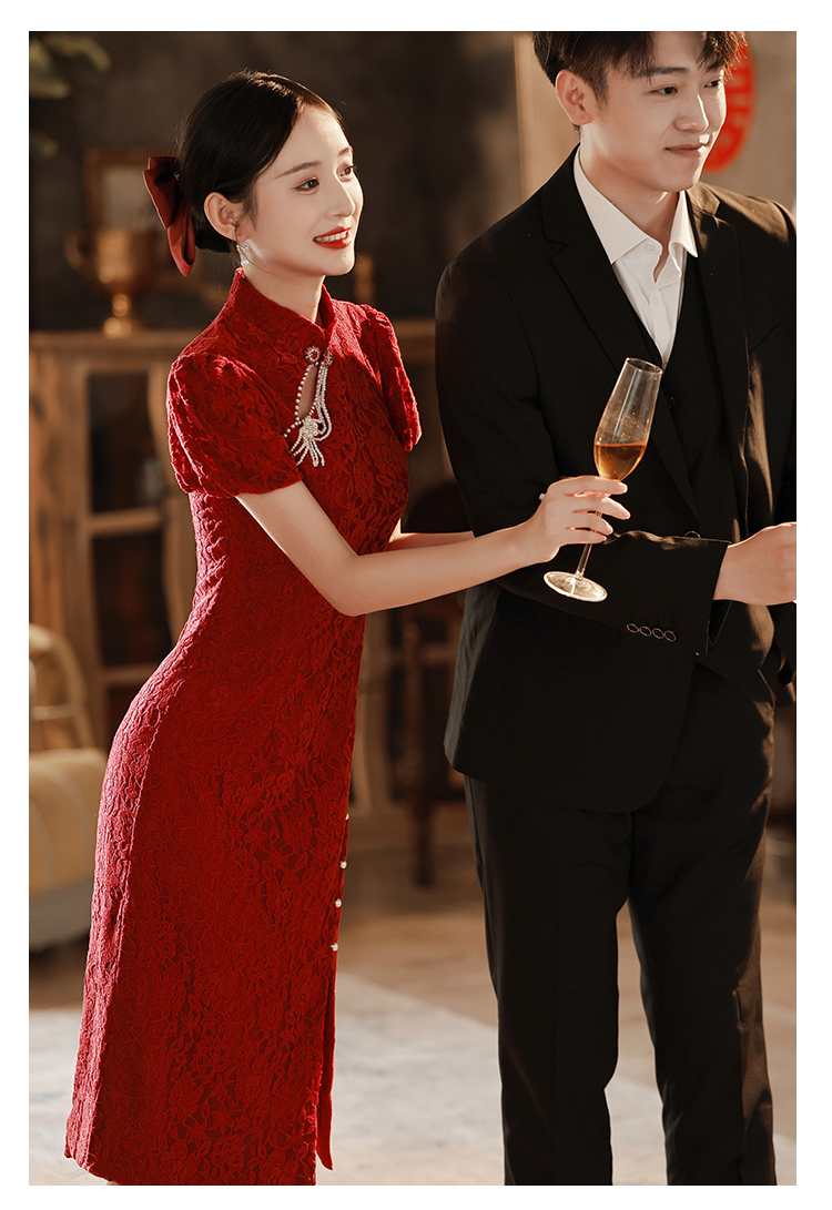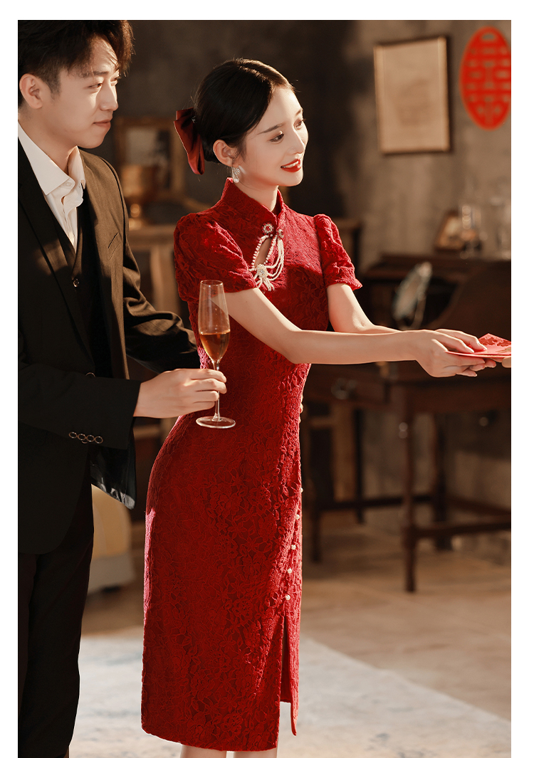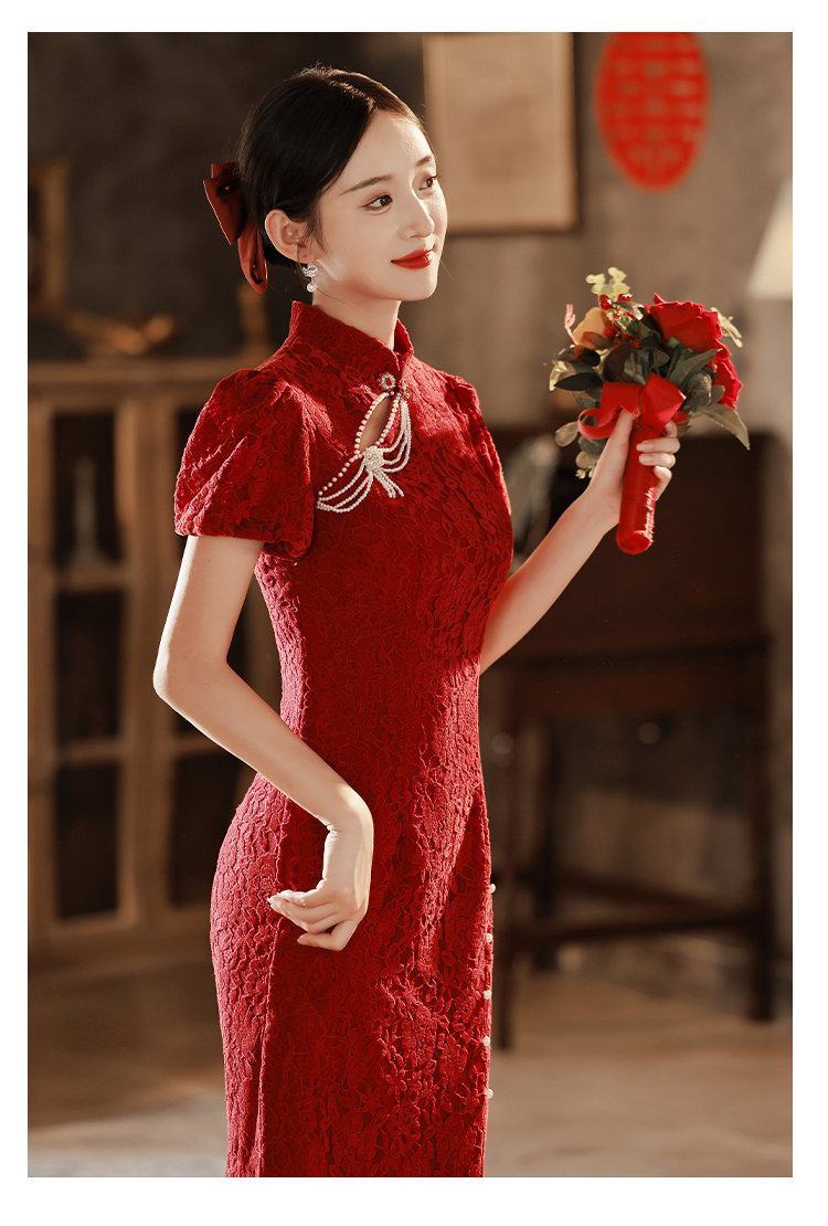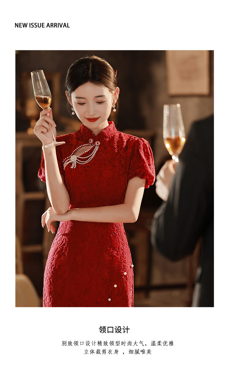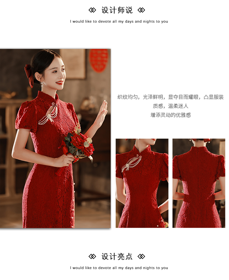 旗袍敬酒服新娘酒紅色平時可穿訂婚連衣裙回門顯瘦中式別致小紅裙