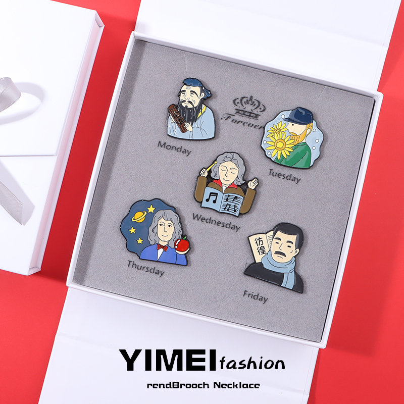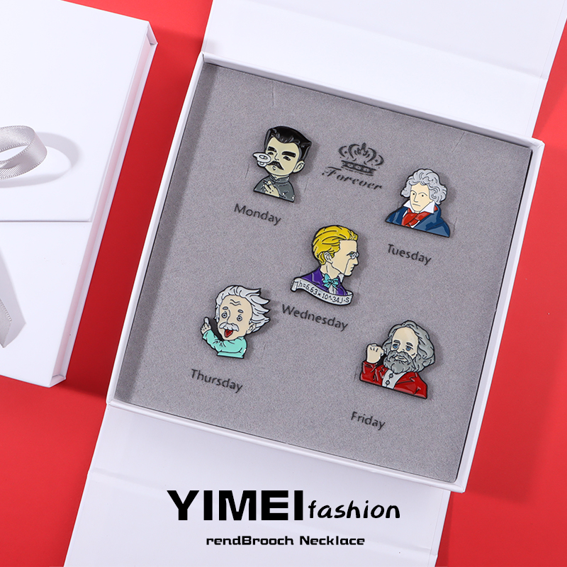 一周禮盒名人勛章魯迅馬克思高斯胸針學習考滿分徽章學生禮品禮物