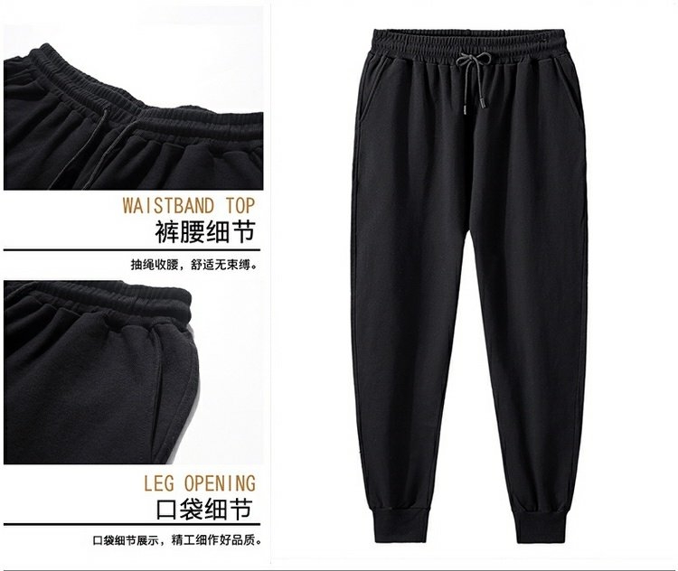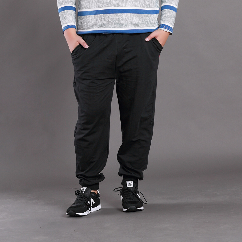 胖子寬松加肥加大碼休閑長褲男士春秋季純棉毛圈運動束腳黑色衛褲