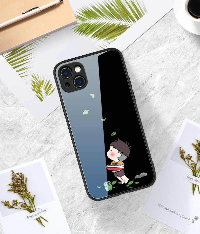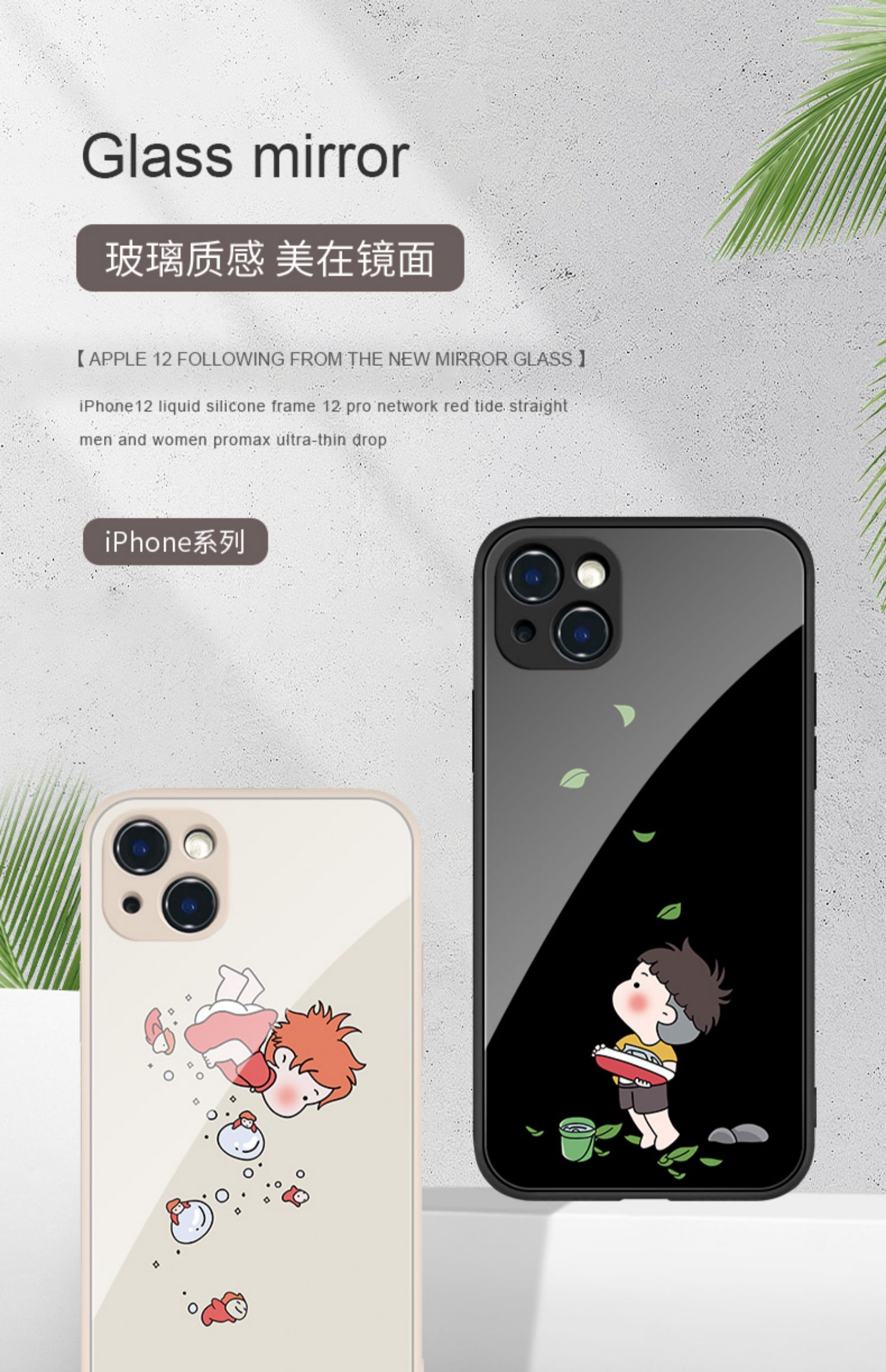 適用蘋果13手機殼15/14波妞宗介iPhone12手繪卡通11promax情侶x可愛xr液態玻璃8p全包鏡面7plus小眾xsmax套6s