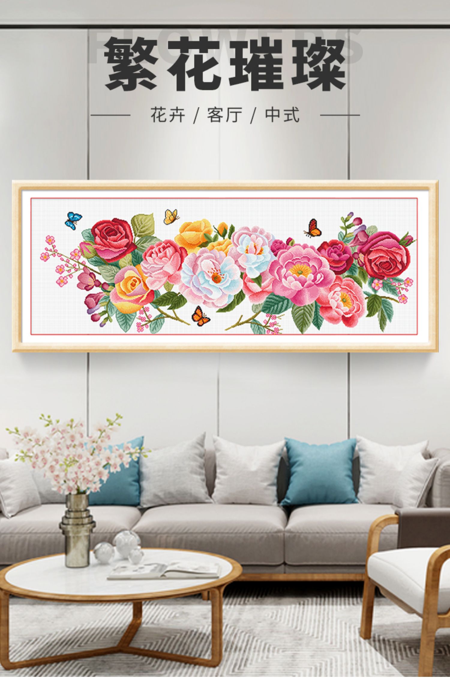 ks十字繡2023新款植物花卉牡丹花客廳書房橫版掛畫繁花璀璨手工繡