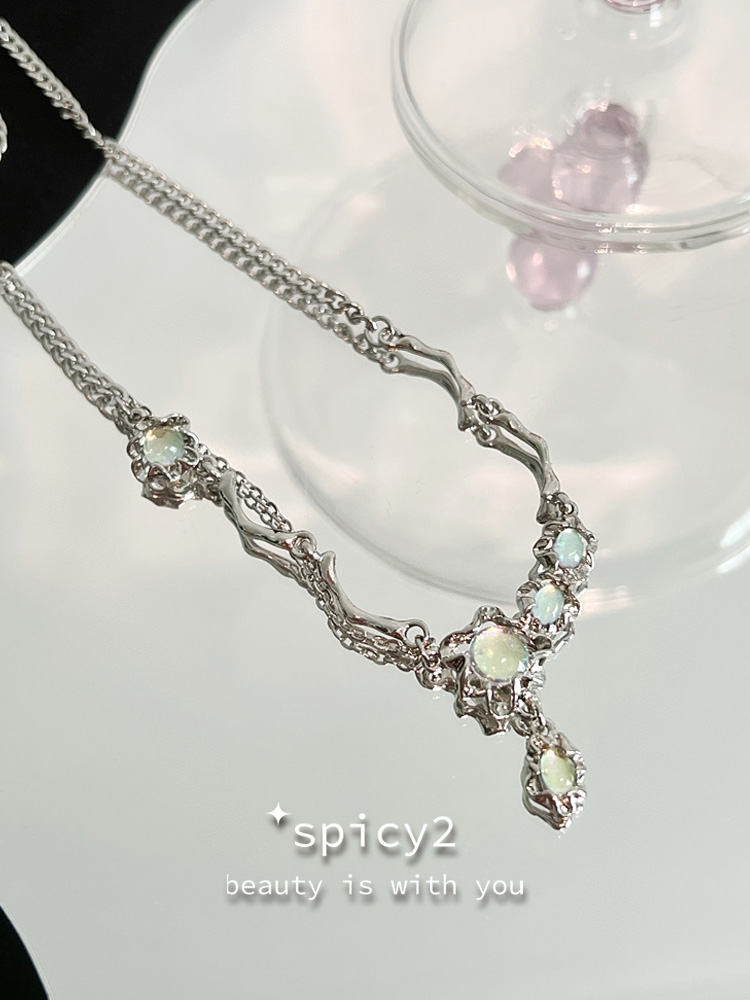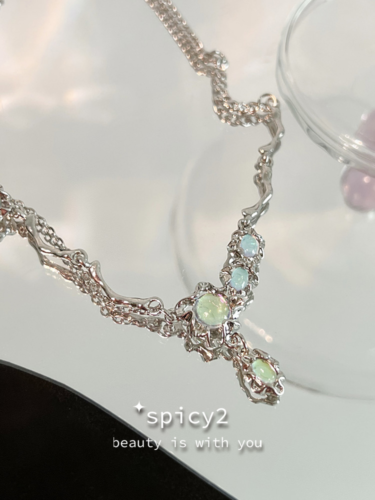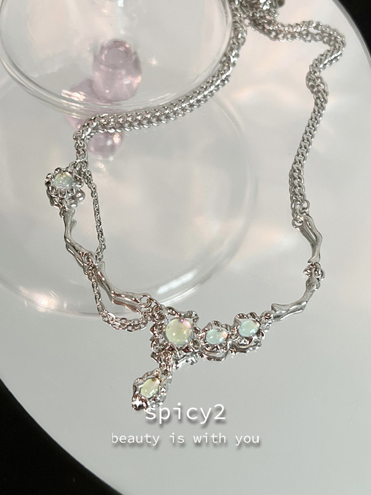 spicy2 ins金屬液態夢幻貓眼鏈條項鏈小眾不對稱個性辣妹鎖骨鏈潮