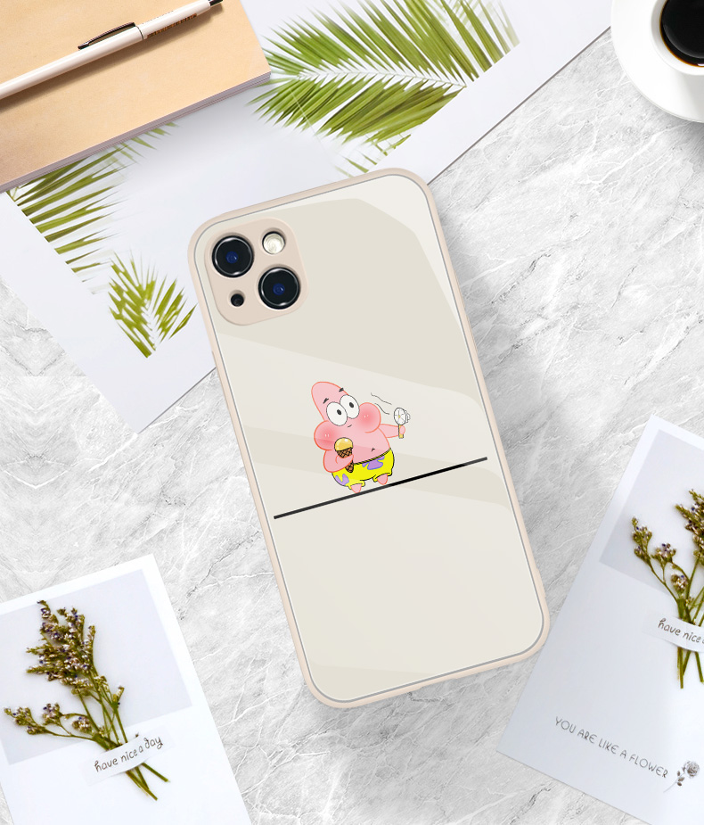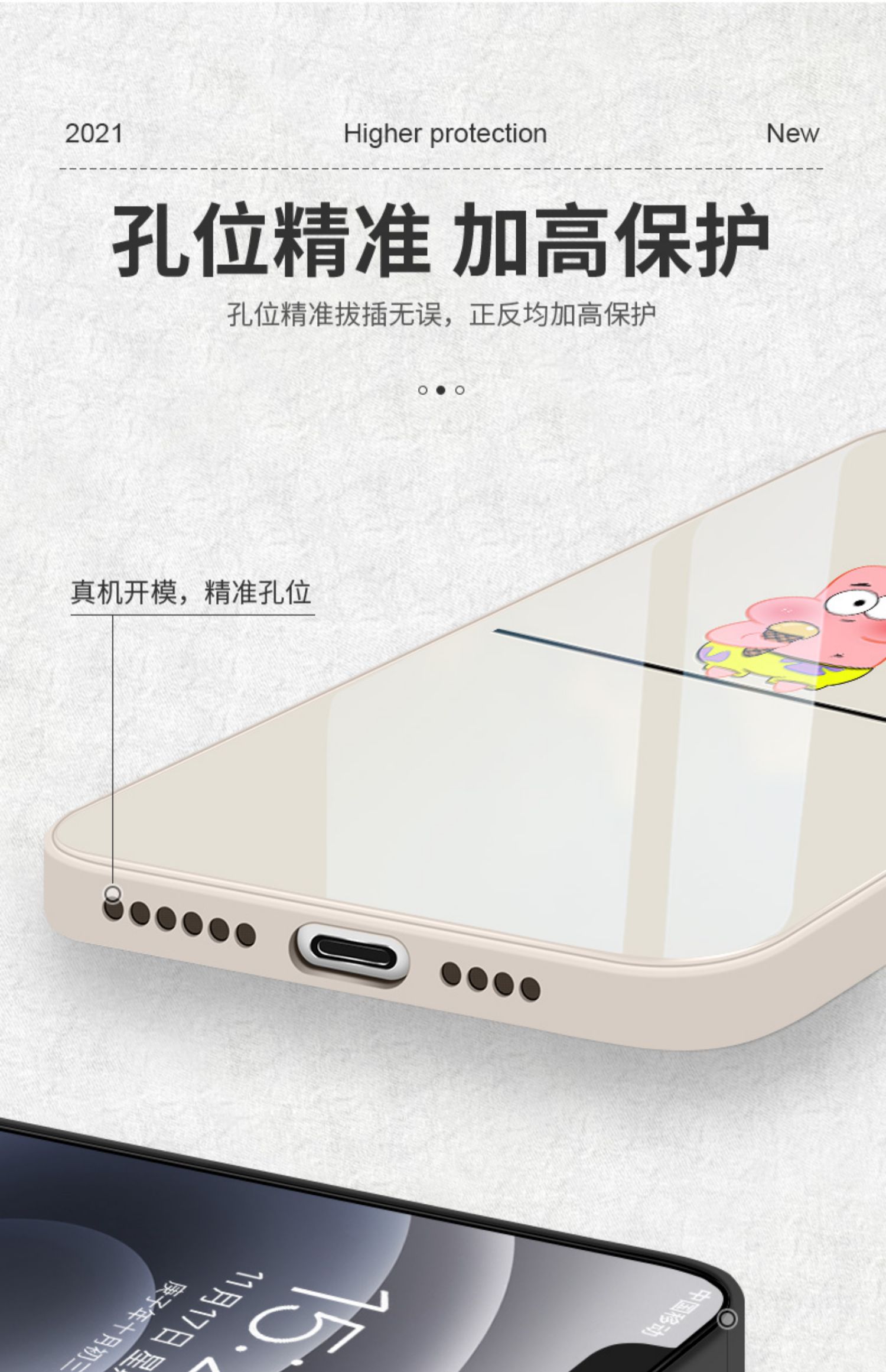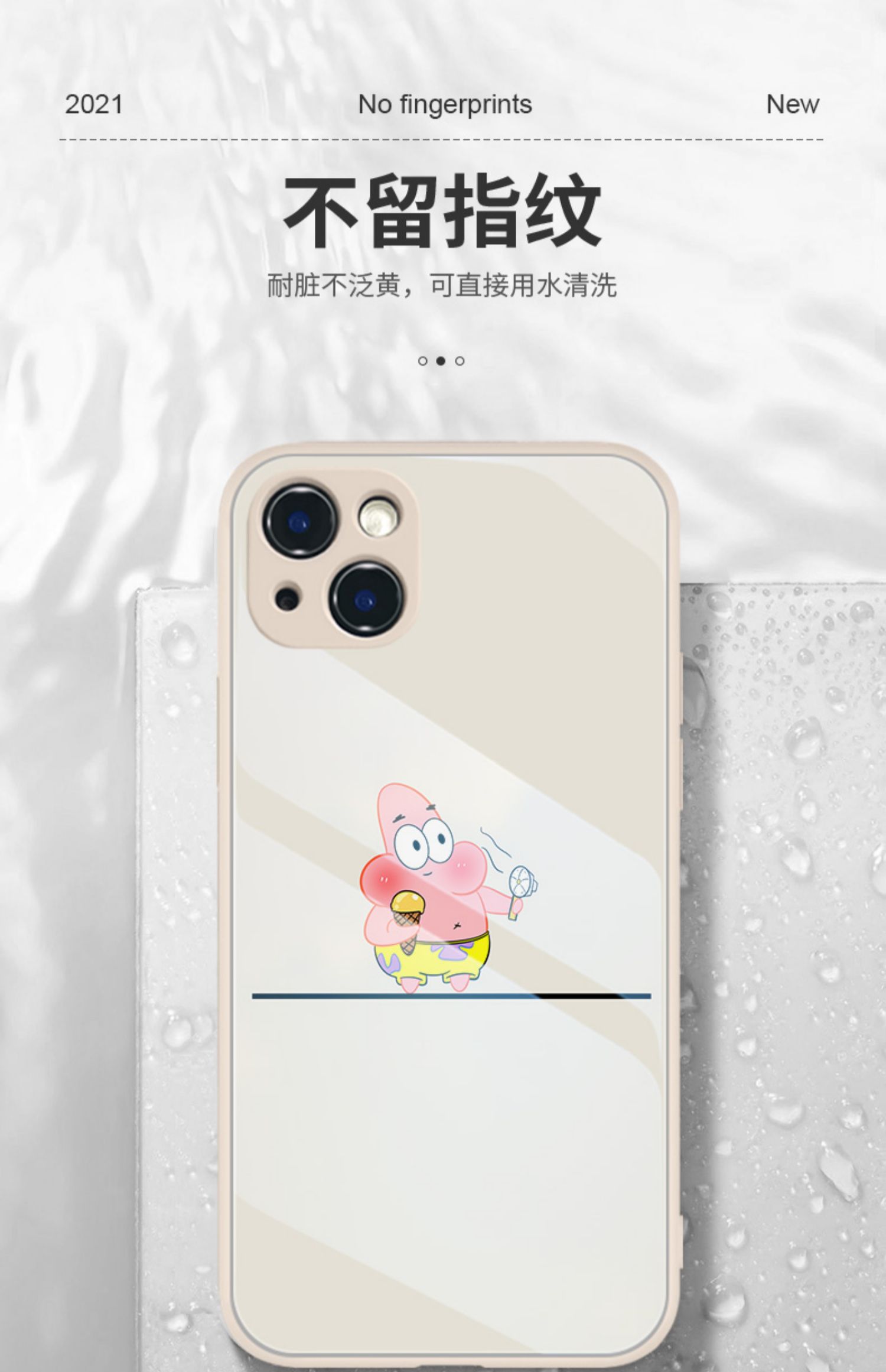 適用蘋果15手機殼14夏季新款iPhone12海綿寶寶11promax派大星13卡通可愛xr趣味情侶8p鏡面玻璃7plus全包xsmax