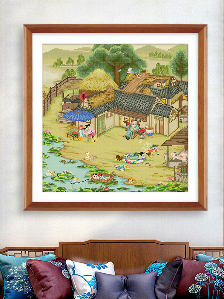 春天十字繡2023新款線繡古風四季夏玄關客廳風景滿繡手工自己繡