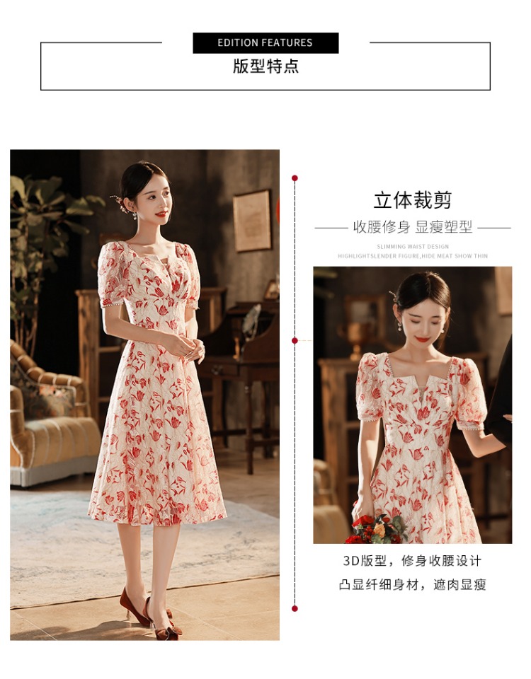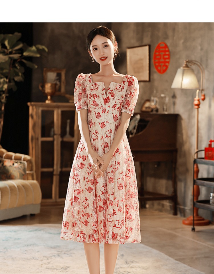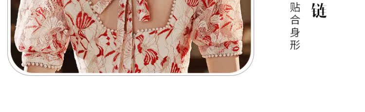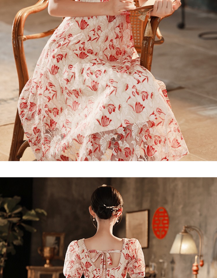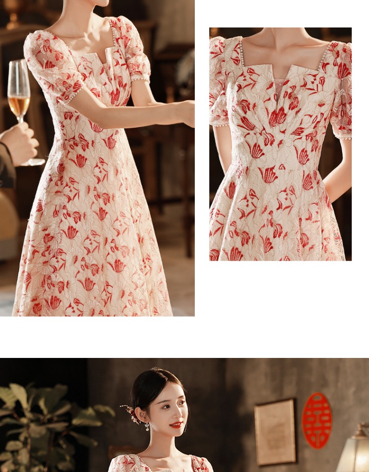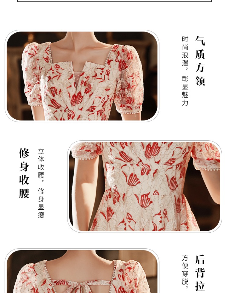訂婚連衣裙敬酒服新娘2023新款紅色禮服女夏季法式蕾絲小個子高端